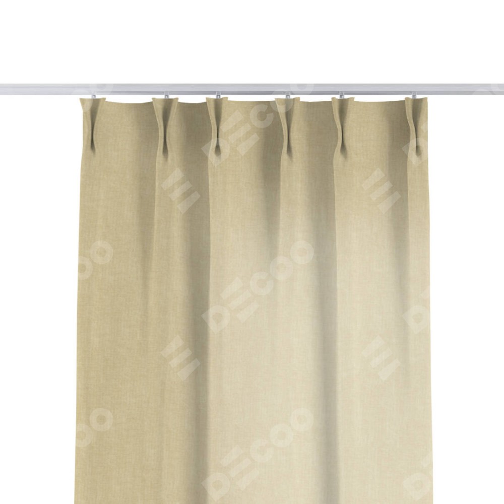 Комплект прямых штор, от производителя «Cortin», пошиты из ткани канвас тёмно-бежевый, артикул ткани v-196. С изнаночной стороны в верхней части штор пристрачивается шторная лента с декоративными складками «Кустик». Для создания элегантных складок прямые шторы шьются по стандарту с коэффициентом 1:2 (на 100 см. ширины проёма 200 см. ширины ткани).