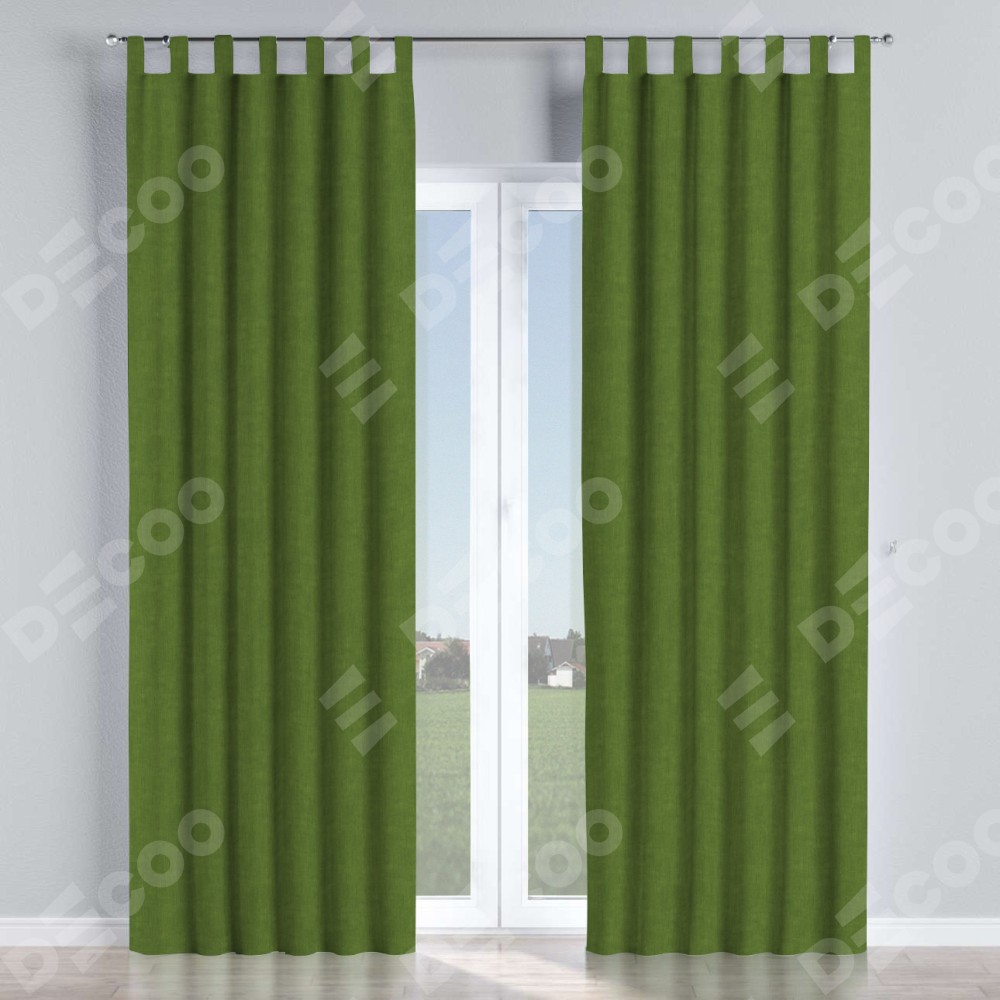 Комплект прямых штор, от производителя «Cortin», пошиты из ткани канвас трава, артикул ткани v-473. Данная модель пошита на петлях, комплектуется на выбор круглым карнизом и подходит для монтажа на стену или потолок. Прямые шторы на петлях шьются по стандарту с коэффициентом 1/2 (на 100 см. ширины проёма 200 см. ширины ткани), отличительным преимуществом данной модели является простой способ монтажа. Достаточно повесить ее на трубу и штора готова!