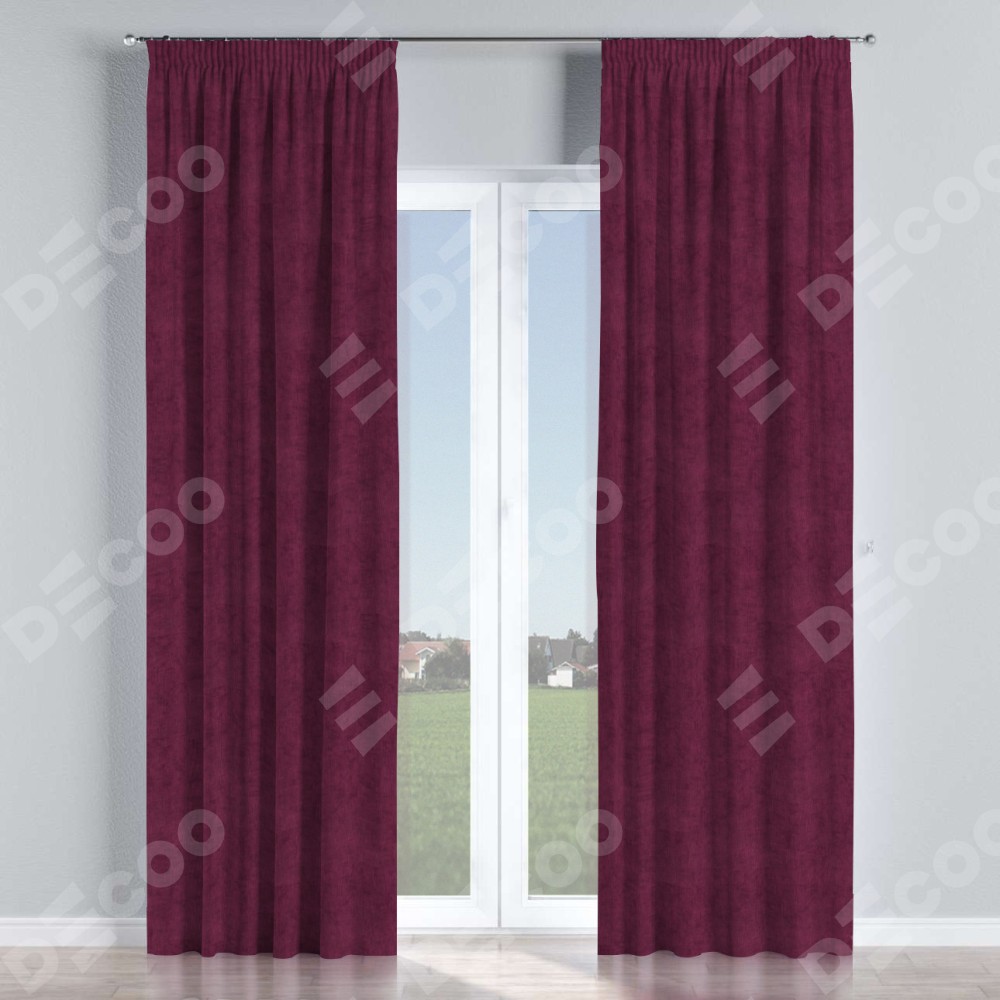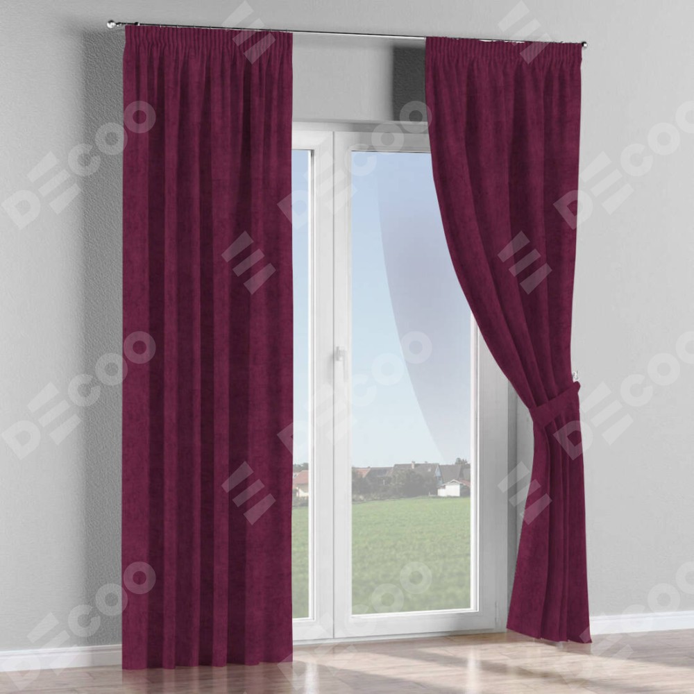 Комплект прямых штор, от производителя «Cortin», пошиты из ткани канвас фиолетовый, артикул ткани v-99. С изнаночной стороны в верхней части штор пристрачивается шторная лента с декоративными складками «Карандаш». Для создания элегантных складок прямые шторы шьются по стандарту с коэффициентом 1:2 (на 100 см. ширины проёма 200 см. ширины ткани).