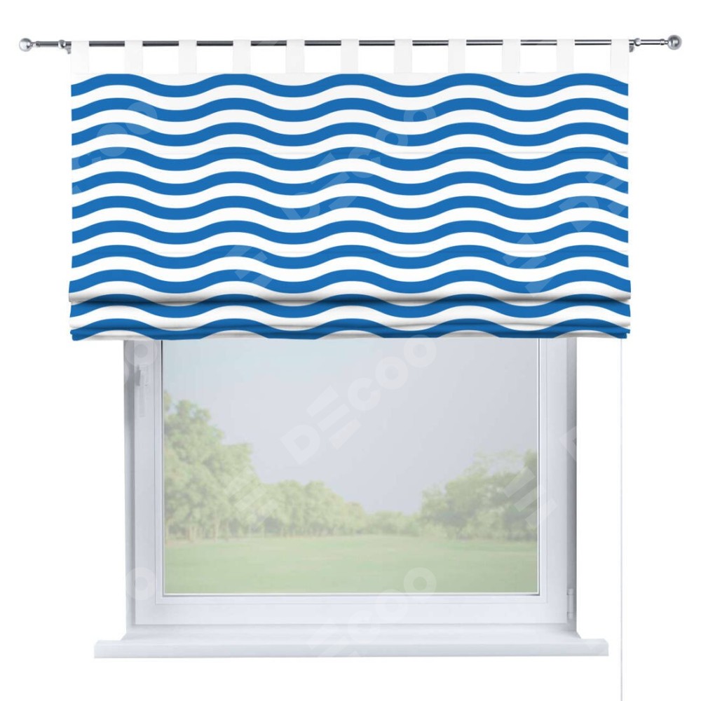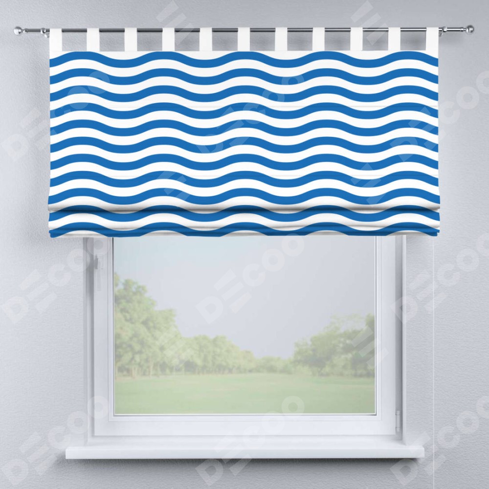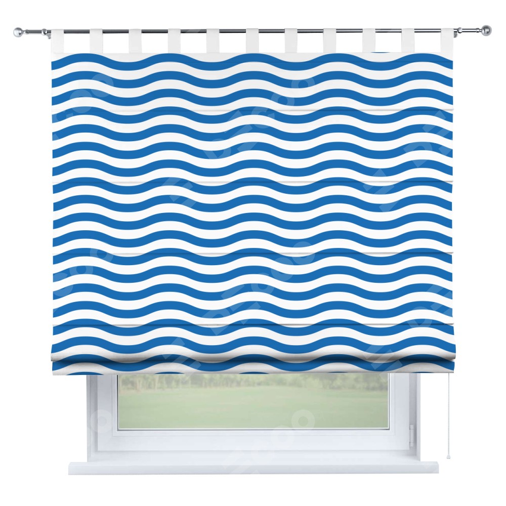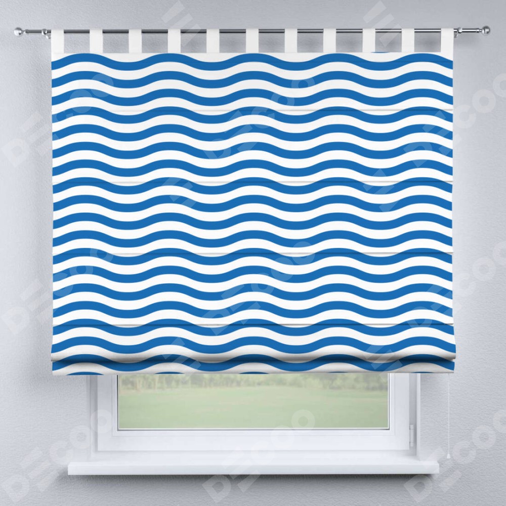 Римская штора производителя «Cortin», используется для проёма, пошита из ткани блэкаут с нанесением сублимационной печати «Волнистые линии». Данная модель пошита на петлях, комплектуется на выбор круглым карнизом и подходит для монтажа на стену. Римская штора на петлях имеет простую систему регулировки высоты, отличительным преимуществом данной модели является простой способ монтажа. Достаточно повесить ее на трубу и штора готова!