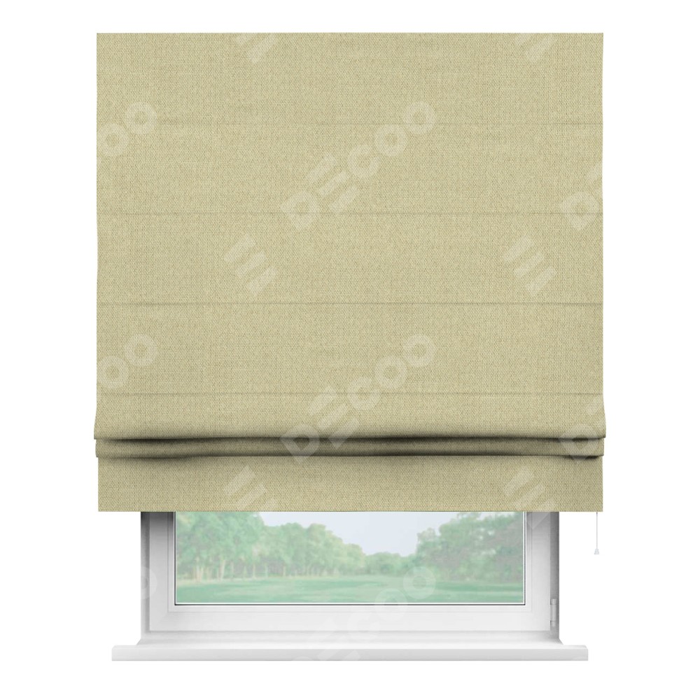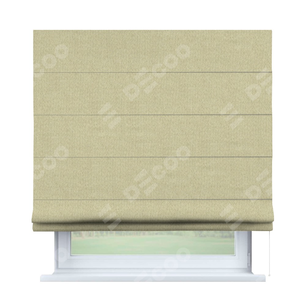Римская штора производителя «Cortin», используется для проёма, пошита из ткани лён димаут шампань, артикул ткани 90994. Имеет универсальный механизм и подходит для монтажа: на потолок, на стену и в нишу.