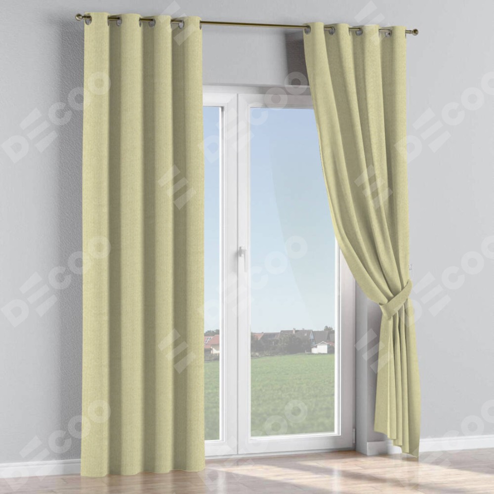 Комплект прямых штор, от производителя «Cortin», пошиты из ткани лён димаут шампань, артикул ткани 90994. Данная модель пошита на люверсах, комплектуется на выбор круглым карнизом и подходит для монтажа на стену или потолок. Прямые шторы на люверсах шьются по стандарту с коэффициентом 1/2 (на 100 см. ширины проёма 200 см. ширины ткани), отличительным преимуществом данной модели является простой способ монтажа. Достаточно повесить ее на трубу и штора готова!