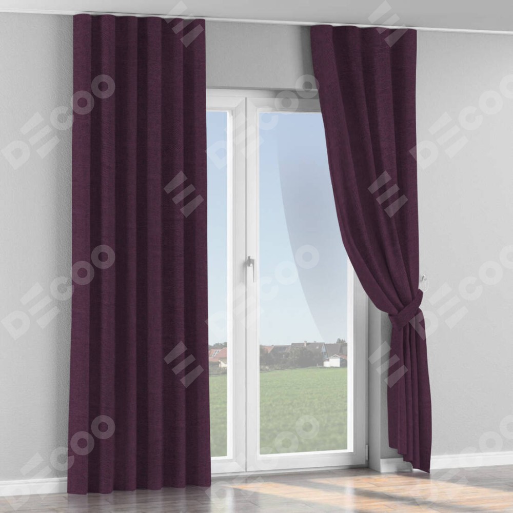 Комплект прямых штор, от производителя «Cortin», пошиты из ткани лён димаут фиолетовый, артикул ткани 16267. С изнаночной стороны в верхней части штор пристрачивается шторная лента с декоративными складками «Волна». Для создания элегантных складок прямые шторы шьются по стандарту с коэффициентом 1:2 (на 100 см. ширины проёма 200 см. ширины ткани).
