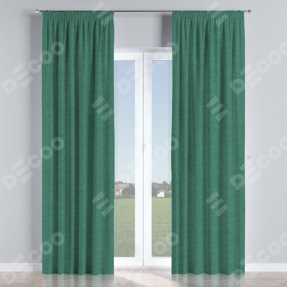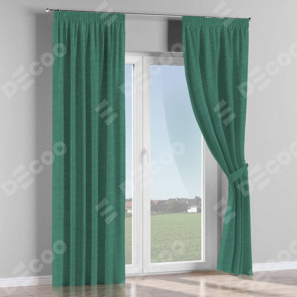 Комплект прямых штор, от производителя «Cortin», пошиты из ткани лён димаут светло-бирюзовый, артикул ткани 91005. С изнаночной стороны в верхней части штор пристрачивается шторная лента с декоративными складками «Карандаш». Для создания элегантных складок прямые шторы шьются по стандарту с коэффициентом 1:2 (на 100 см. ширины проёма 200 см. ширины ткани).