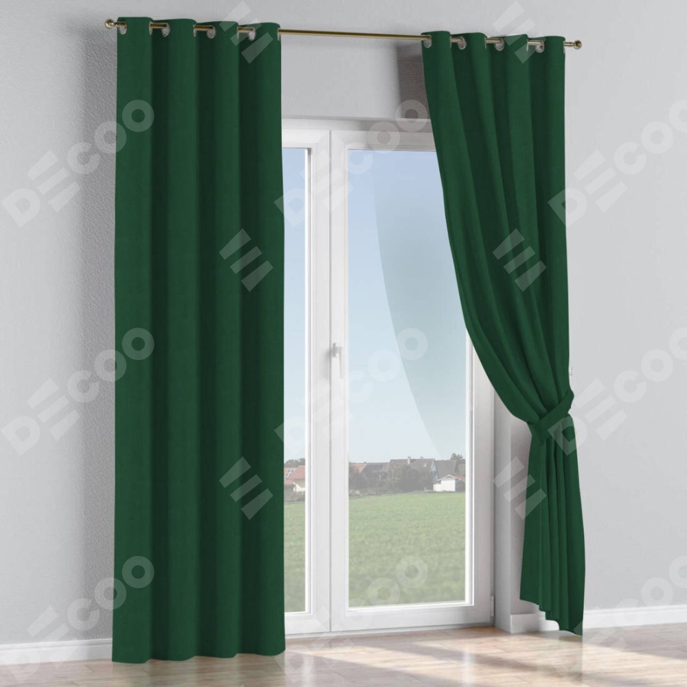 Комплект прямых штор, от производителя «Cortin», пошиты из ткани блэкаут однотонный зелёный, артикул ткани 91572−2. Данная модель пошита на люверсах, комплектуется на выбор круглым карнизом и подходит для монтажа на стену или потолок. Прямые шторы на люверсах шьются по стандарту с коэффициентом 1/2 (на 100 см. ширины проёма 200 см. ширины ткани), отличительным преимуществом данной модели является простой способ монтажа. Достаточно повесить ее на трубу и штора готова!