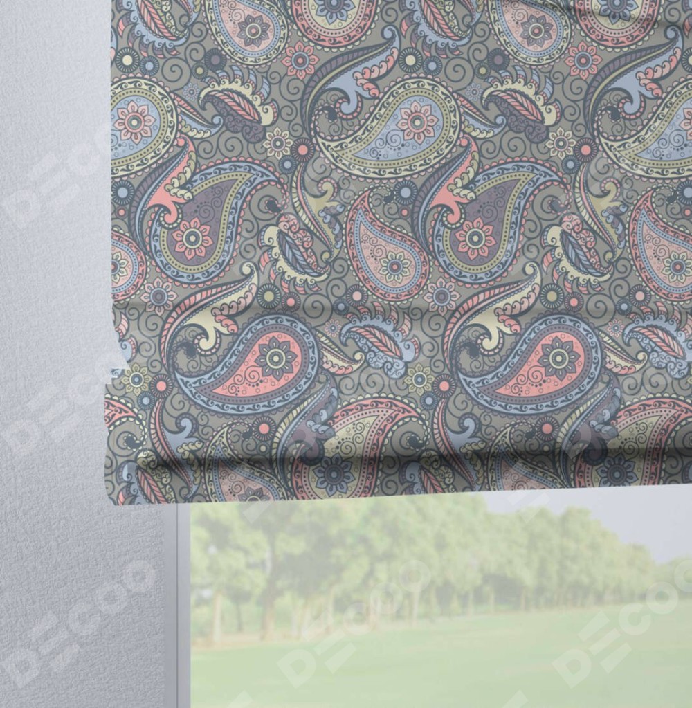 Римская штора производителя «Cortin», используется для проёма, пошита из ткани блэкаут с нанесением сублимационной печати «Цветной пейсли». Данная модель пошита на петлях, комплектуется на выбор круглым карнизом и подходит для монтажа на стену. Римская штора на петлях имеет простую систему регулировки высоты, отличительным преимуществом данной модели является простой способ монтажа. Достаточно повесить ее на трубу и штора готова!