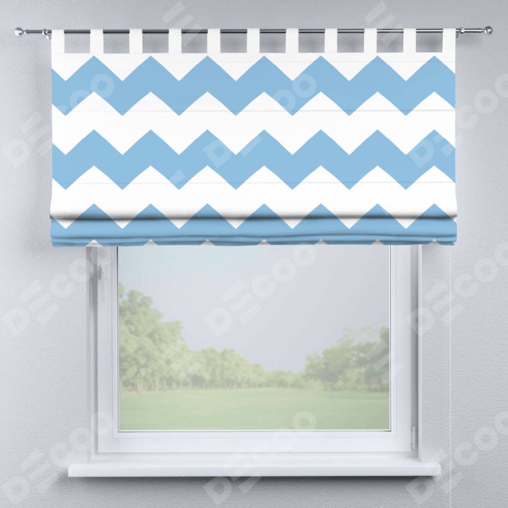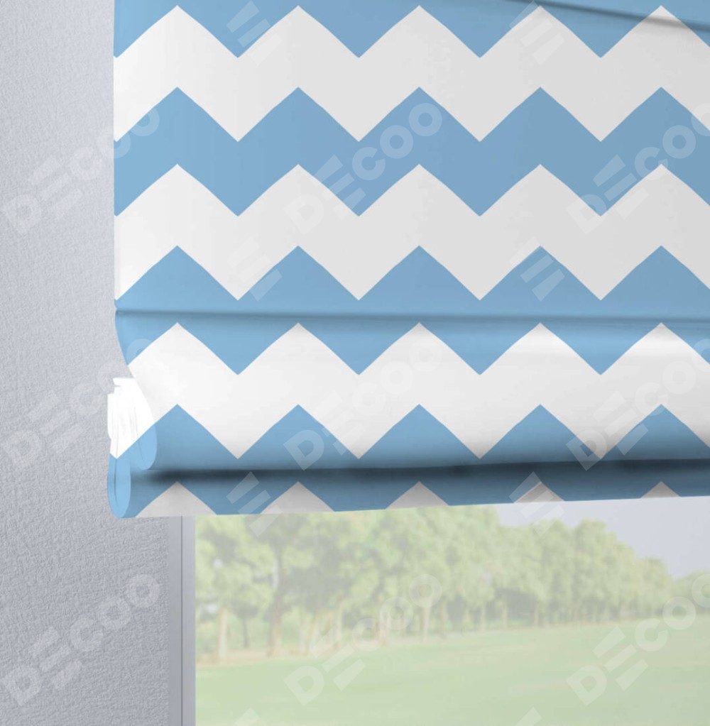 Римская штора производителя «Cortin», используется для проёма, пошита из ткани блэкаут с нанесением сублимационной печати «Зигзаг крупный». Данная модель пошита на петлях, комплектуется на выбор круглым карнизом и подходит для монтажа на стену. Римская штора на петлях имеет простую систему регулировки высоты, отличительным преимуществом данной модели является простой способ монтажа. Достаточно повесить ее на трубу и штора готова!