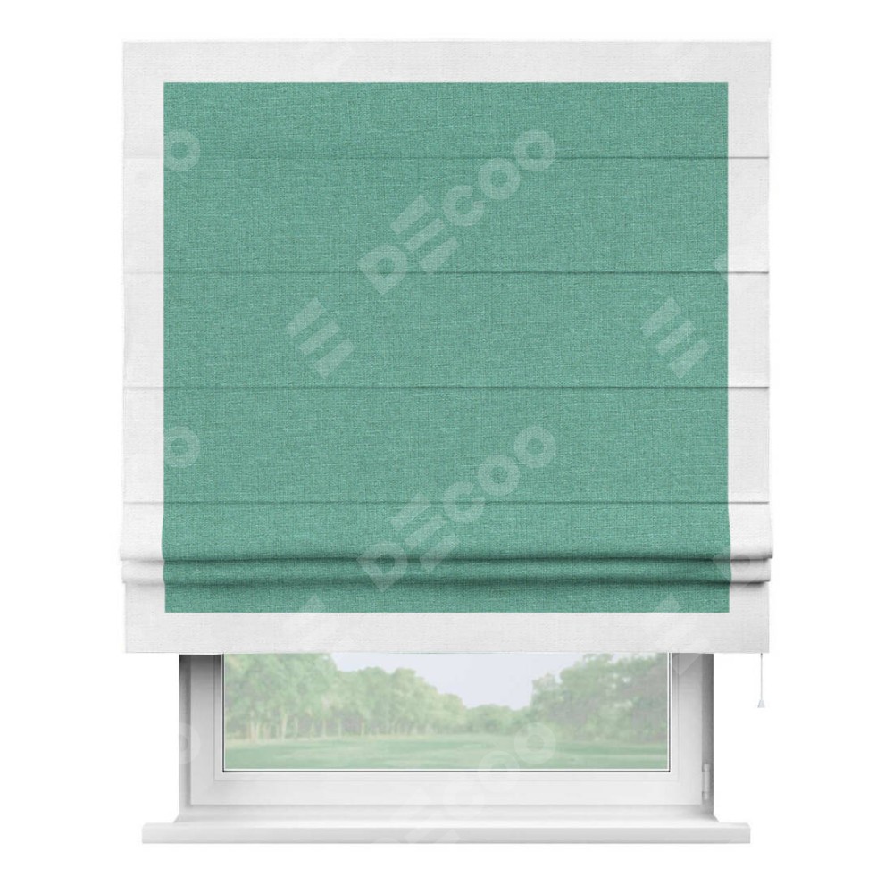 Римская штора «Кортин» с кантом Чесс, для проема, лён светло-бирюзовый