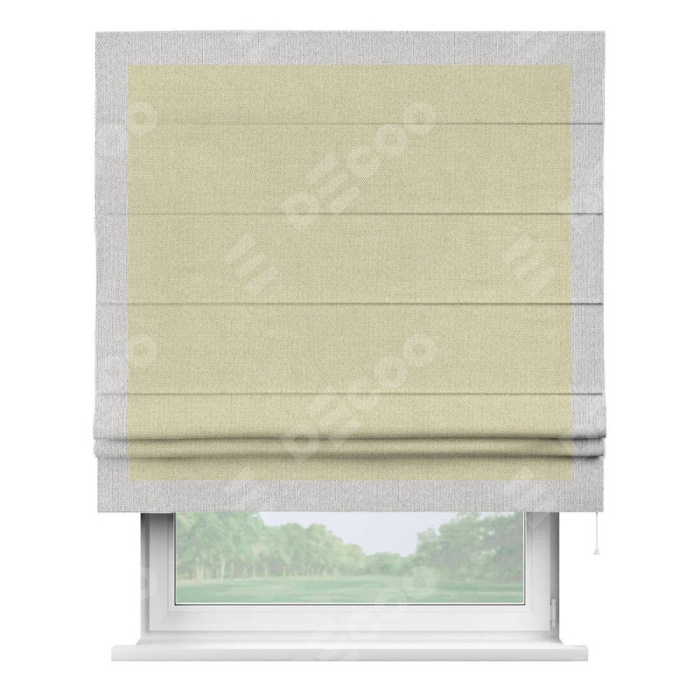 Римская штора «Кортин» с кантом Чесс, для проема, ткань лён димаут, шампань