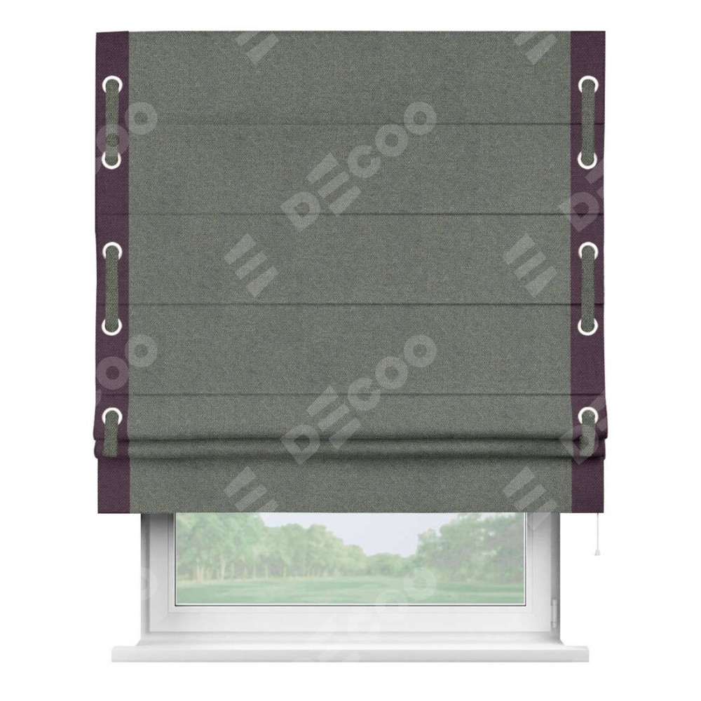 Римская штора «Кортин» с кантом Стрим Дуо (люверсы с пояском), для проема, ткань лён димаут, тёмно-серый