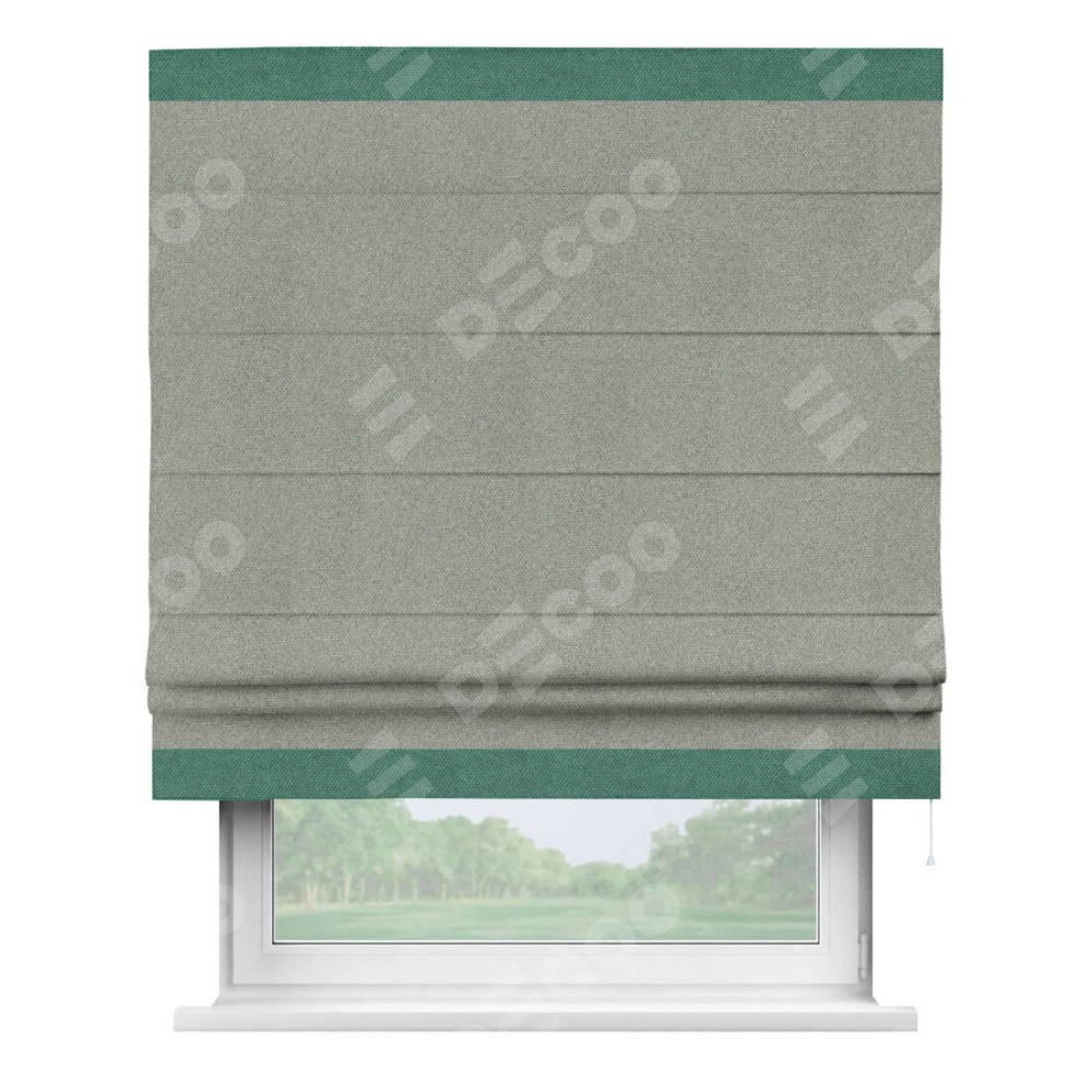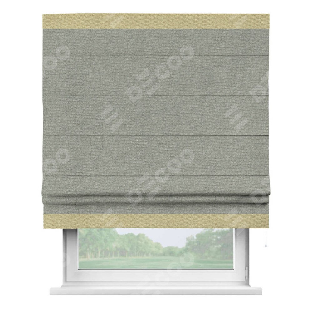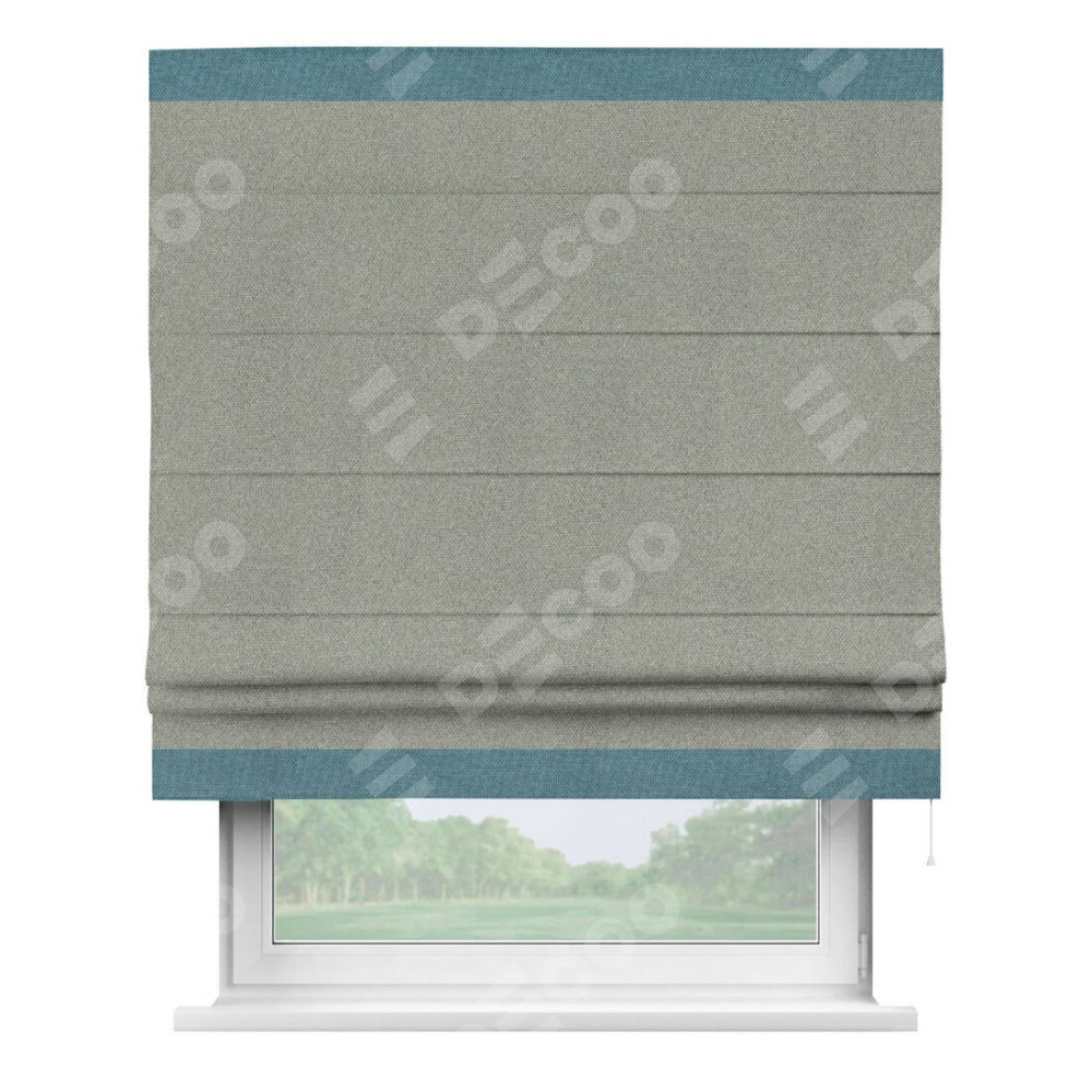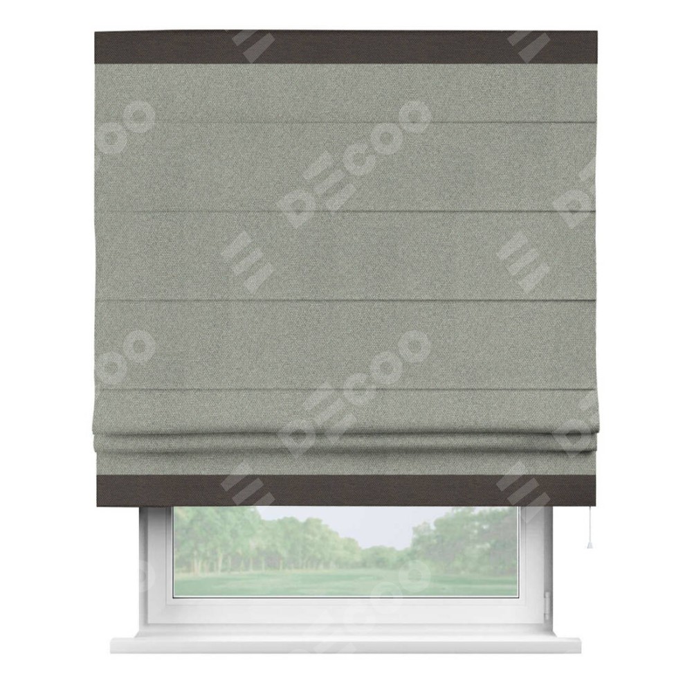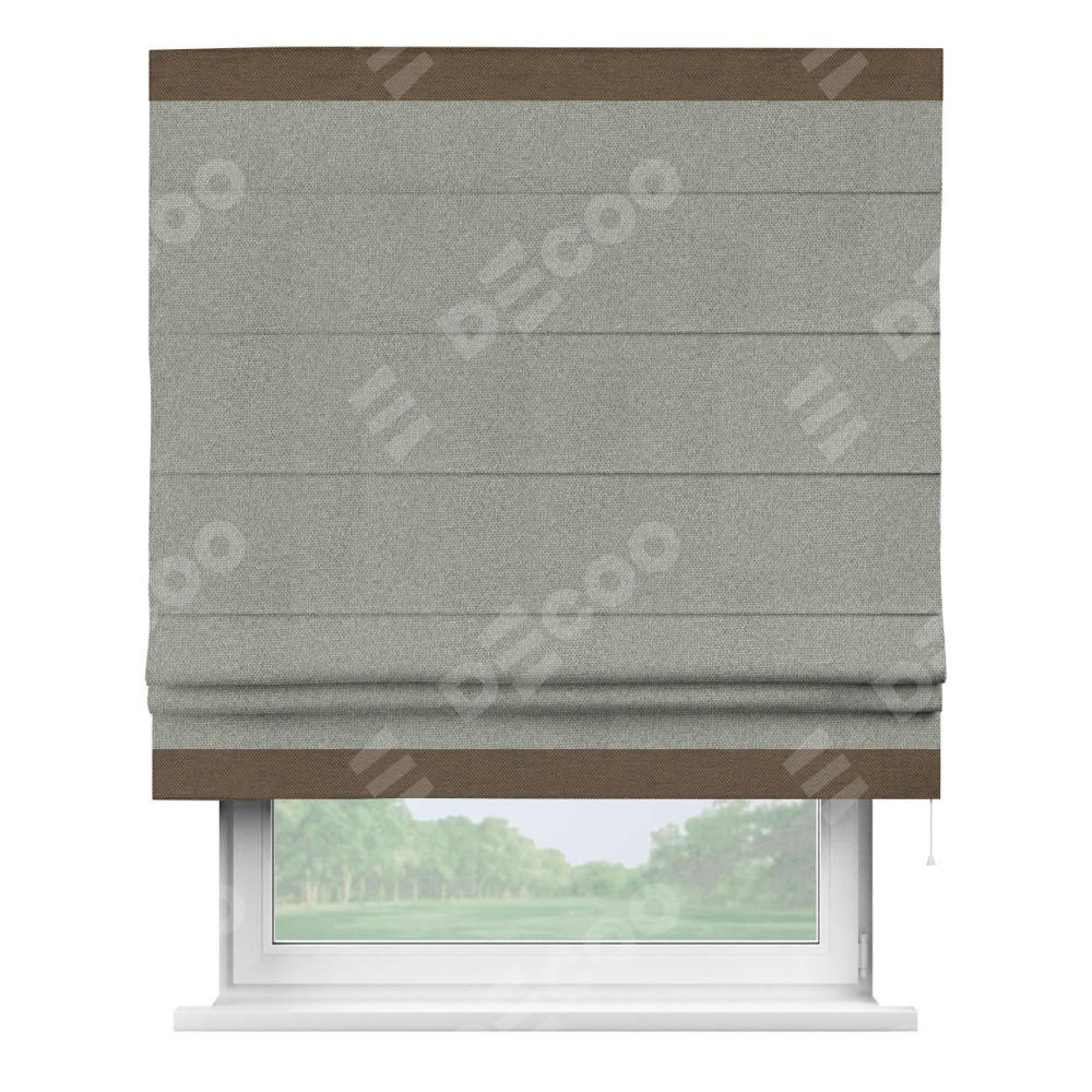 Римская штора «Кортин» для проема, лён димаут серый с кантом Горизонт