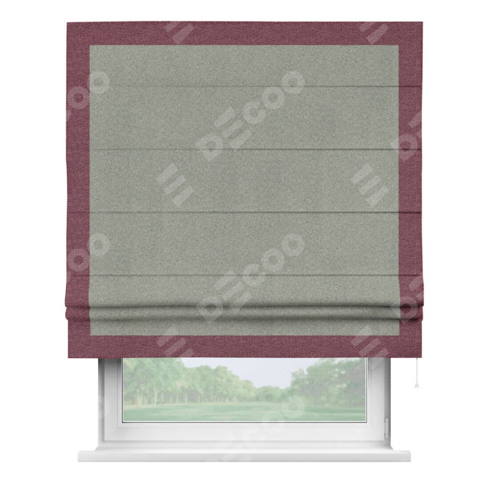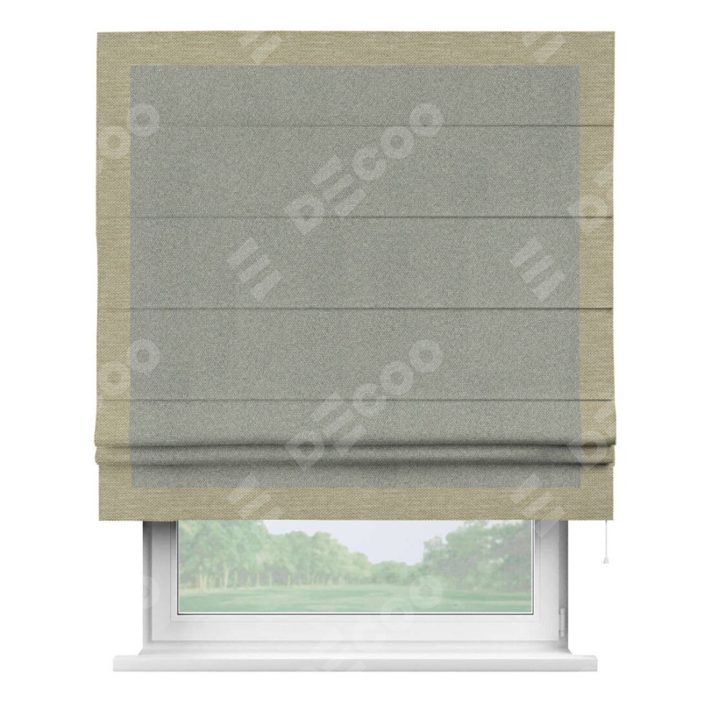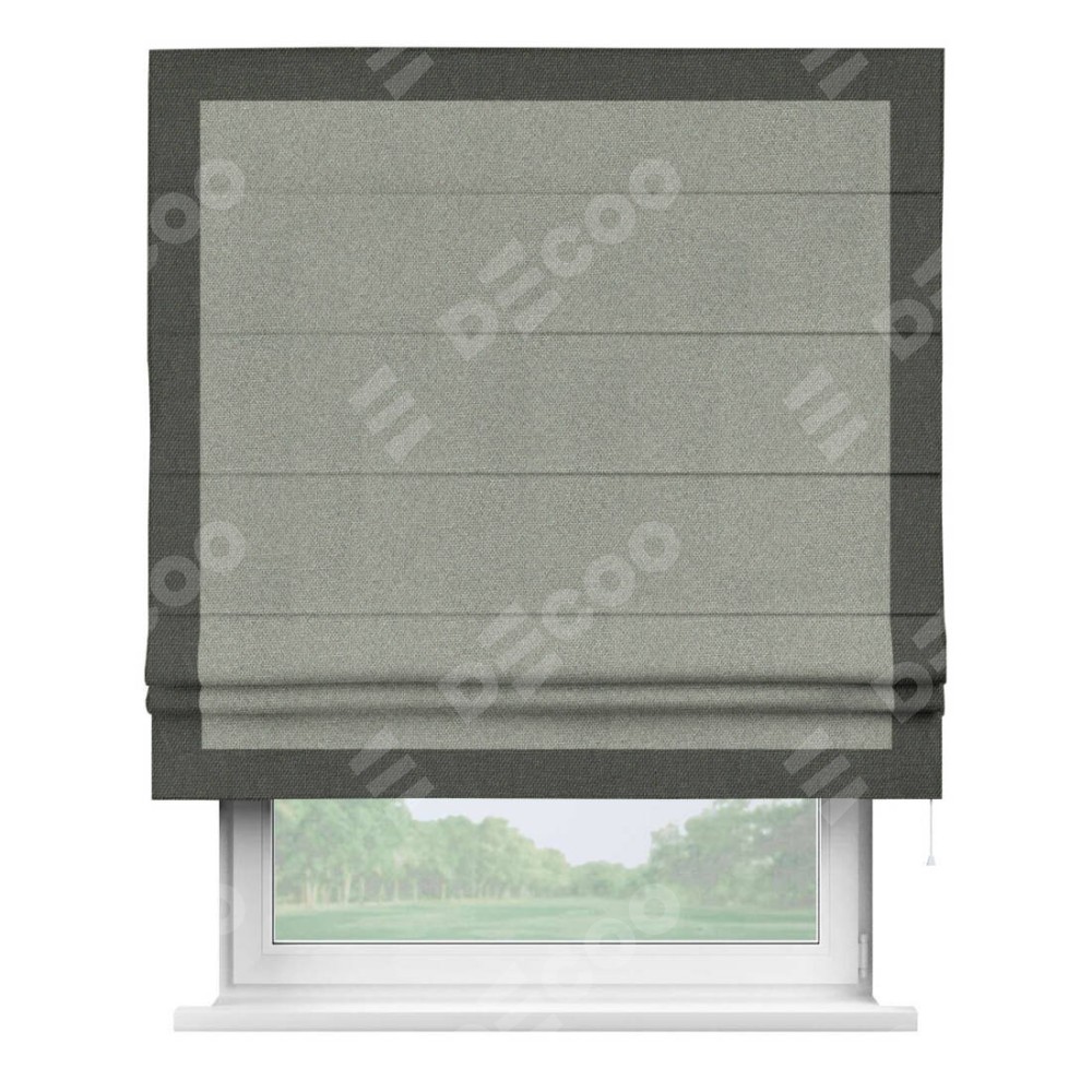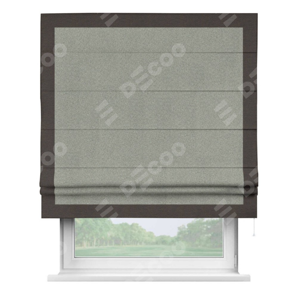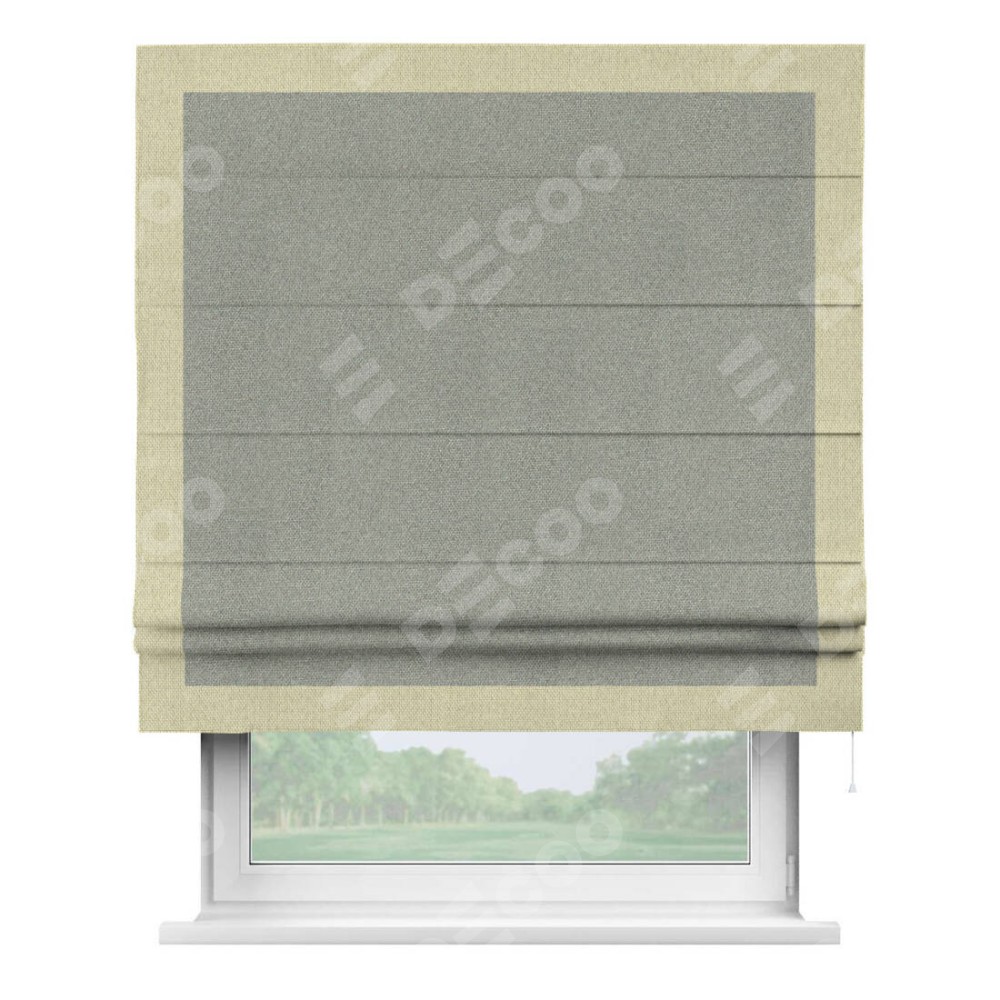 Римская штора «Кортин» для проема, лён димаут серый с кантом Чесс