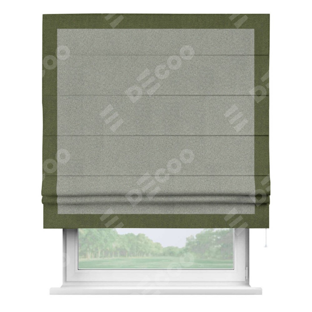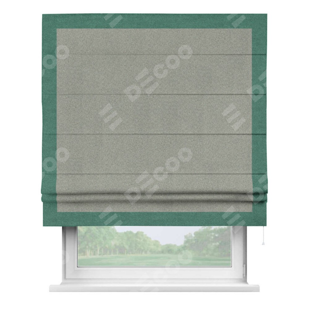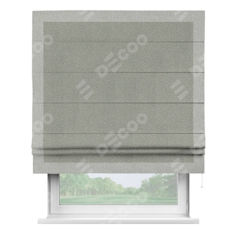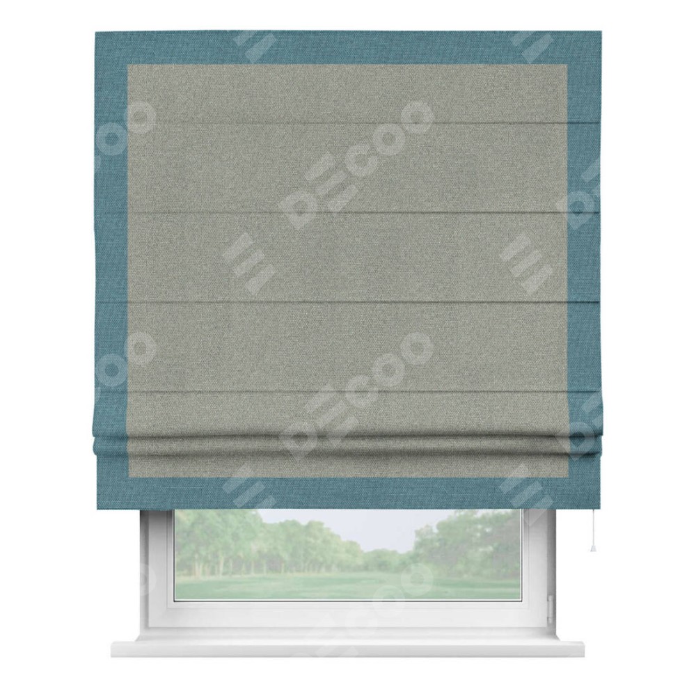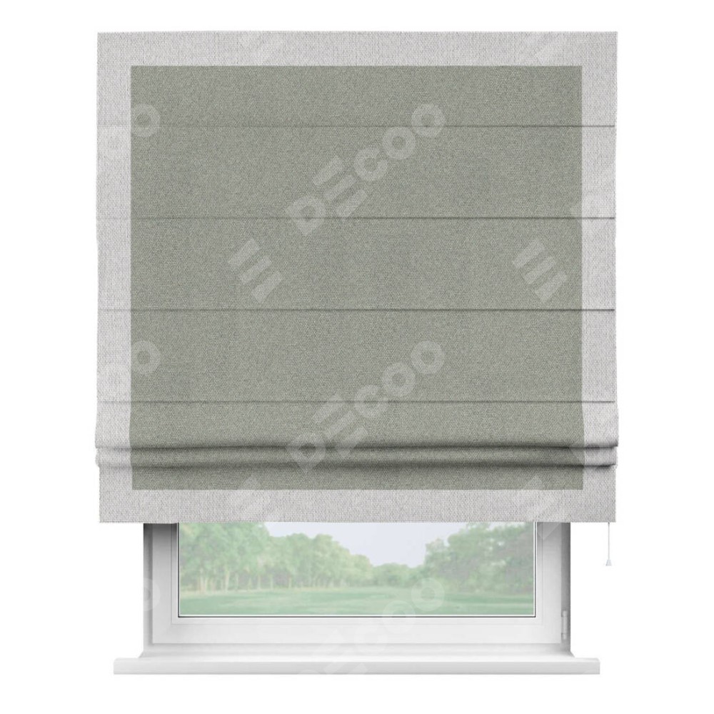 Римская штора «Кортин» для проема, лён димаут серый с кантом Чесс