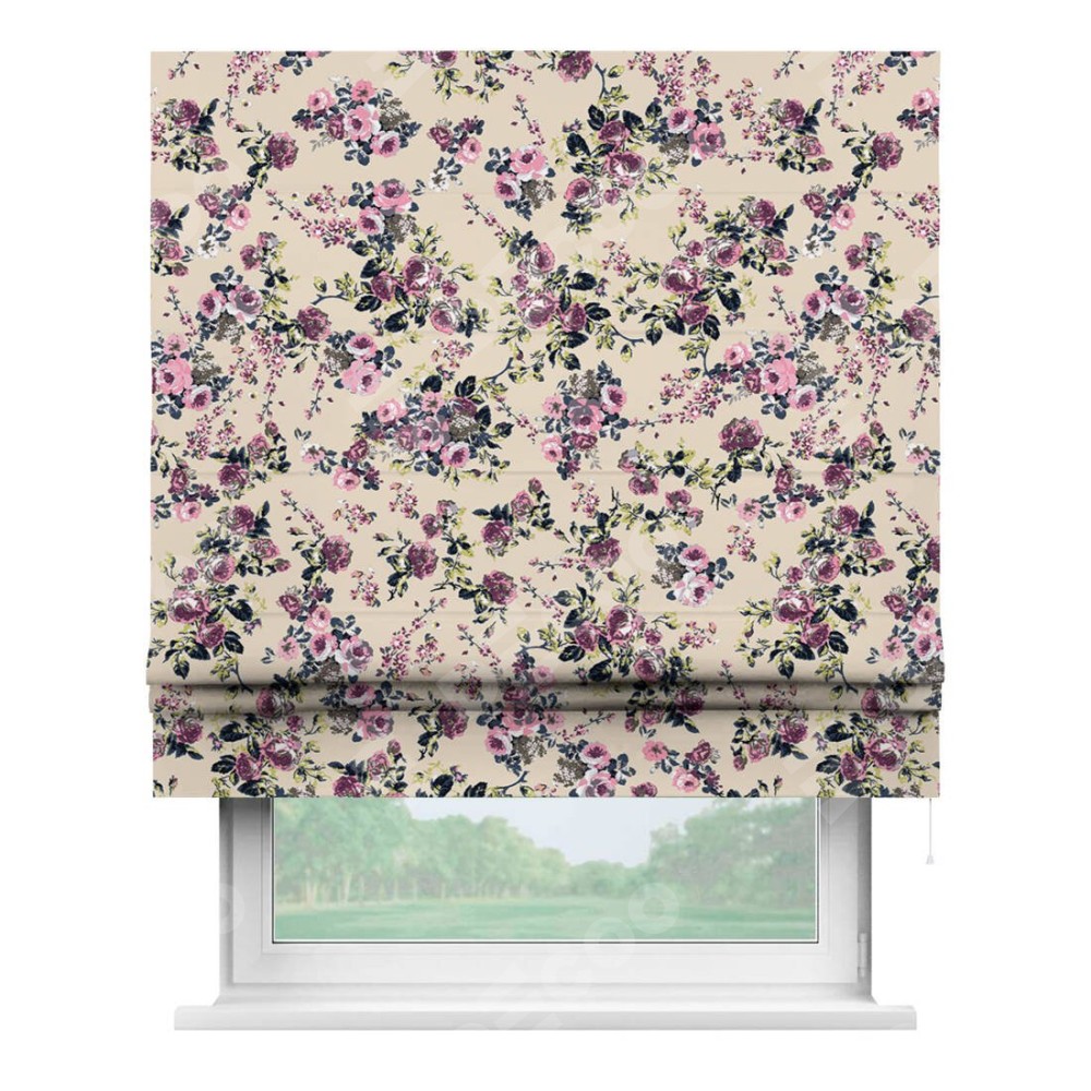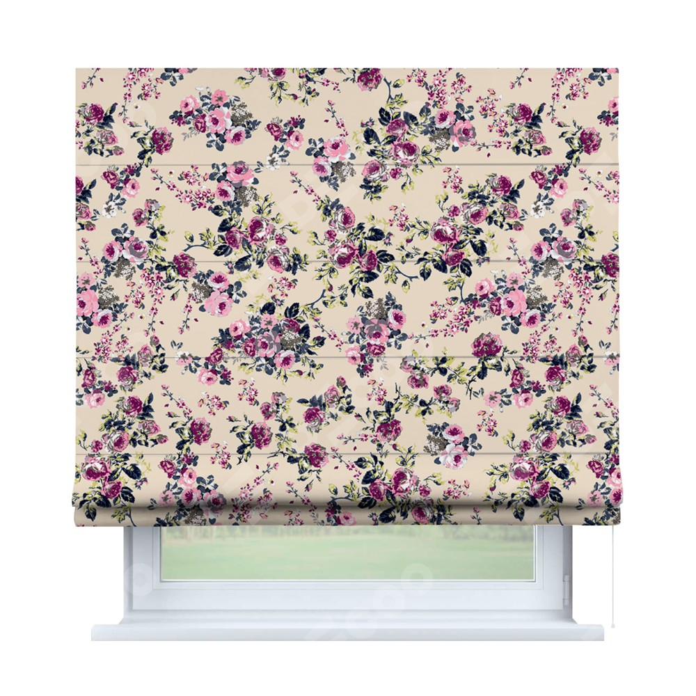 Римская штора «Кортин» для проема «Россыпь розовых цветов»