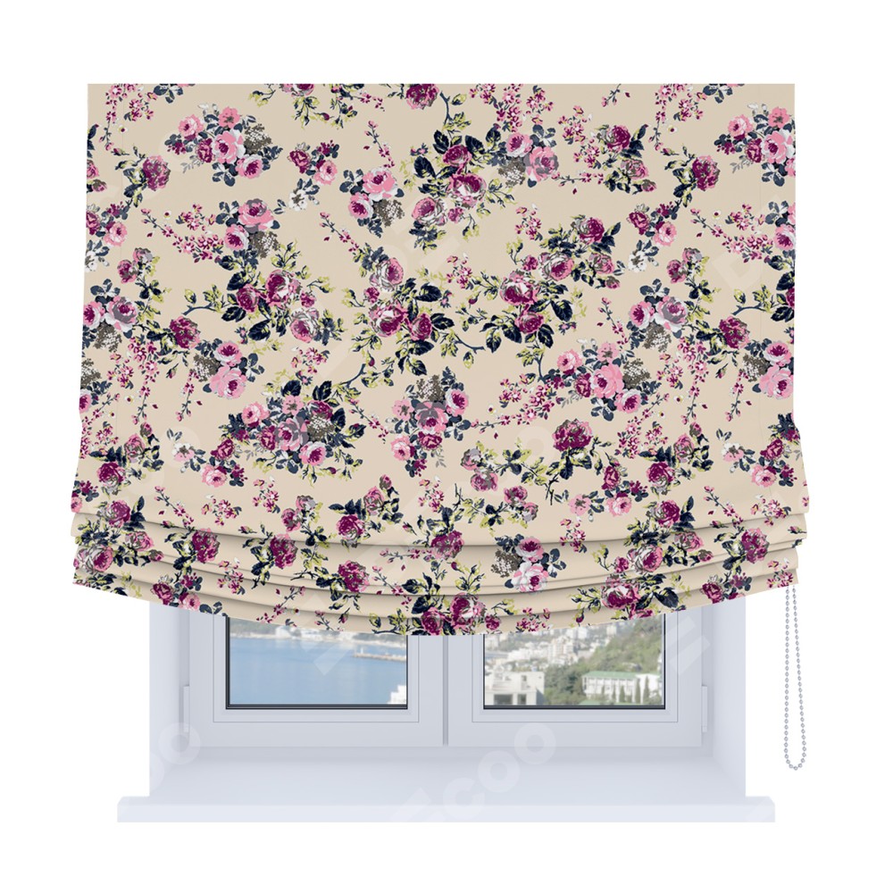 Римская штора Soft с мягкими складками, «Россыпь розовых цветов»