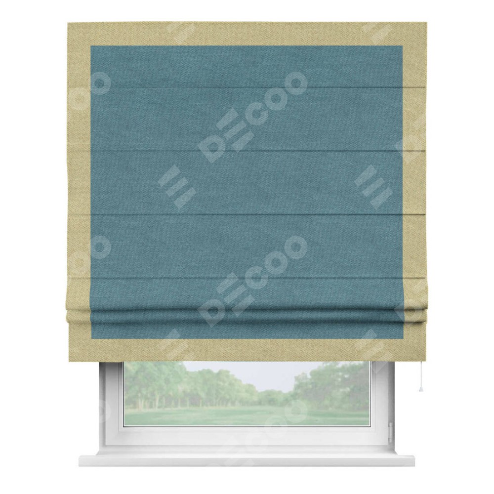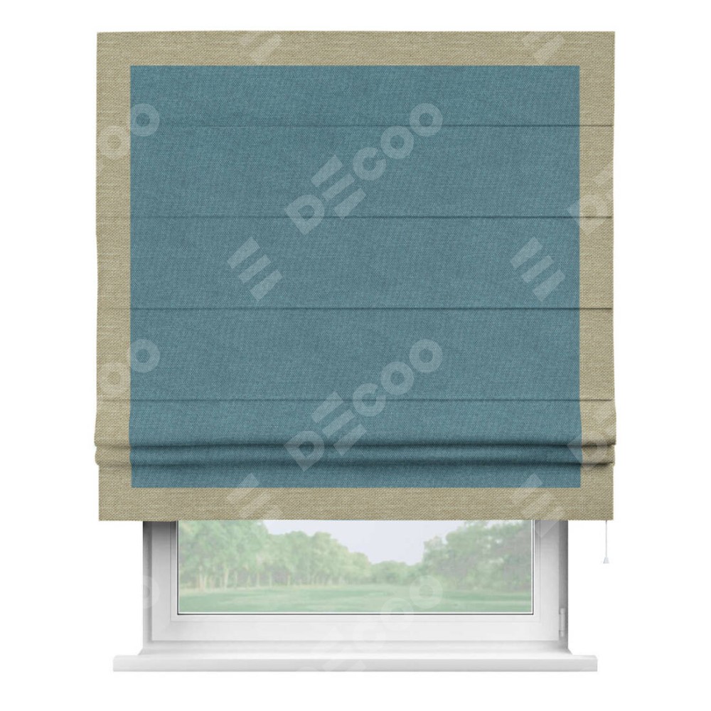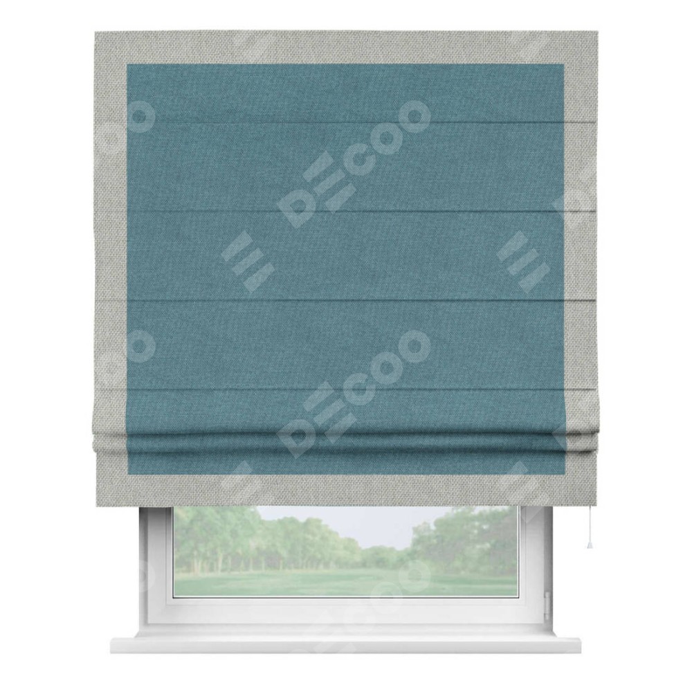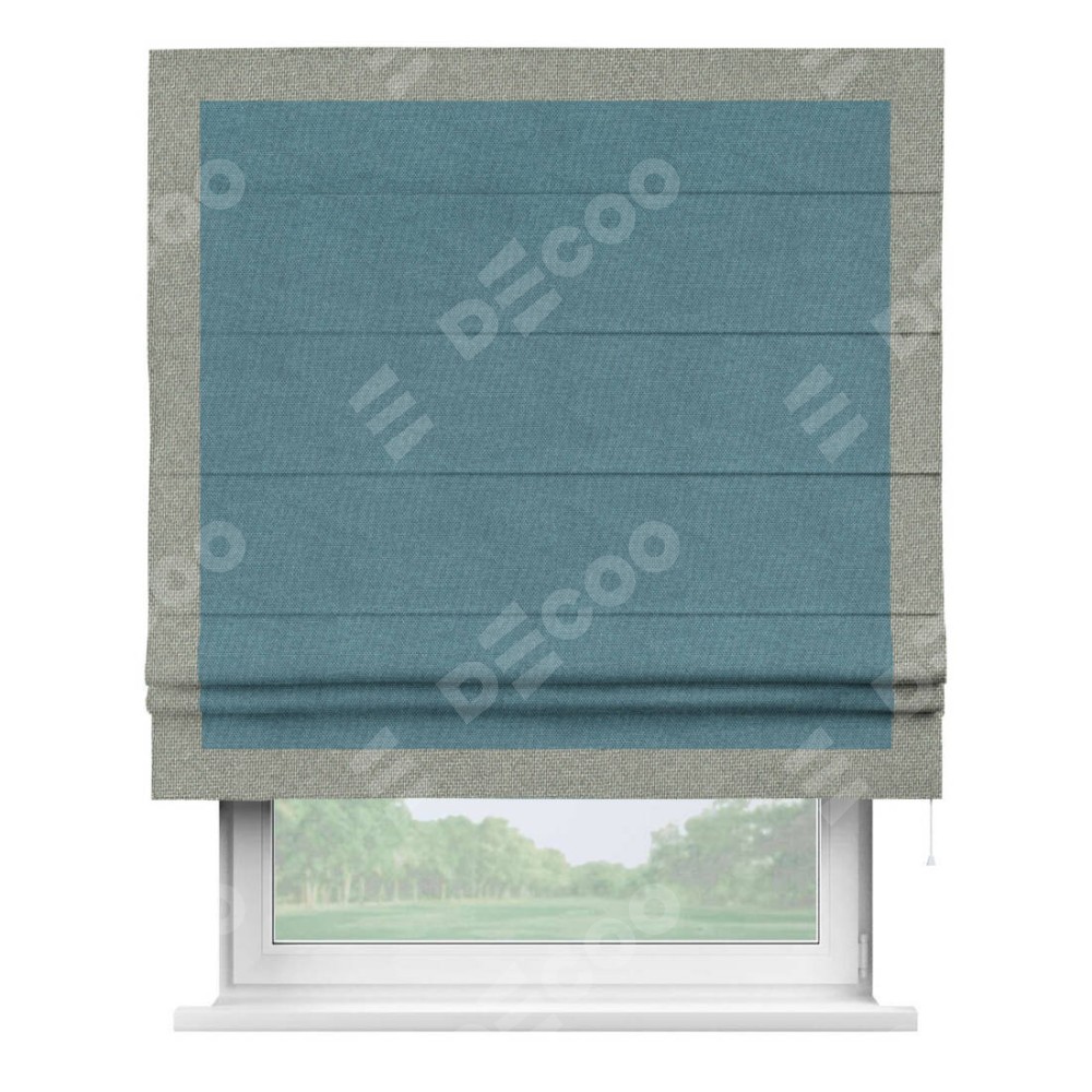 Римская штора «Кортин» для проема, лён димаут светло-синий с кантом Чесс