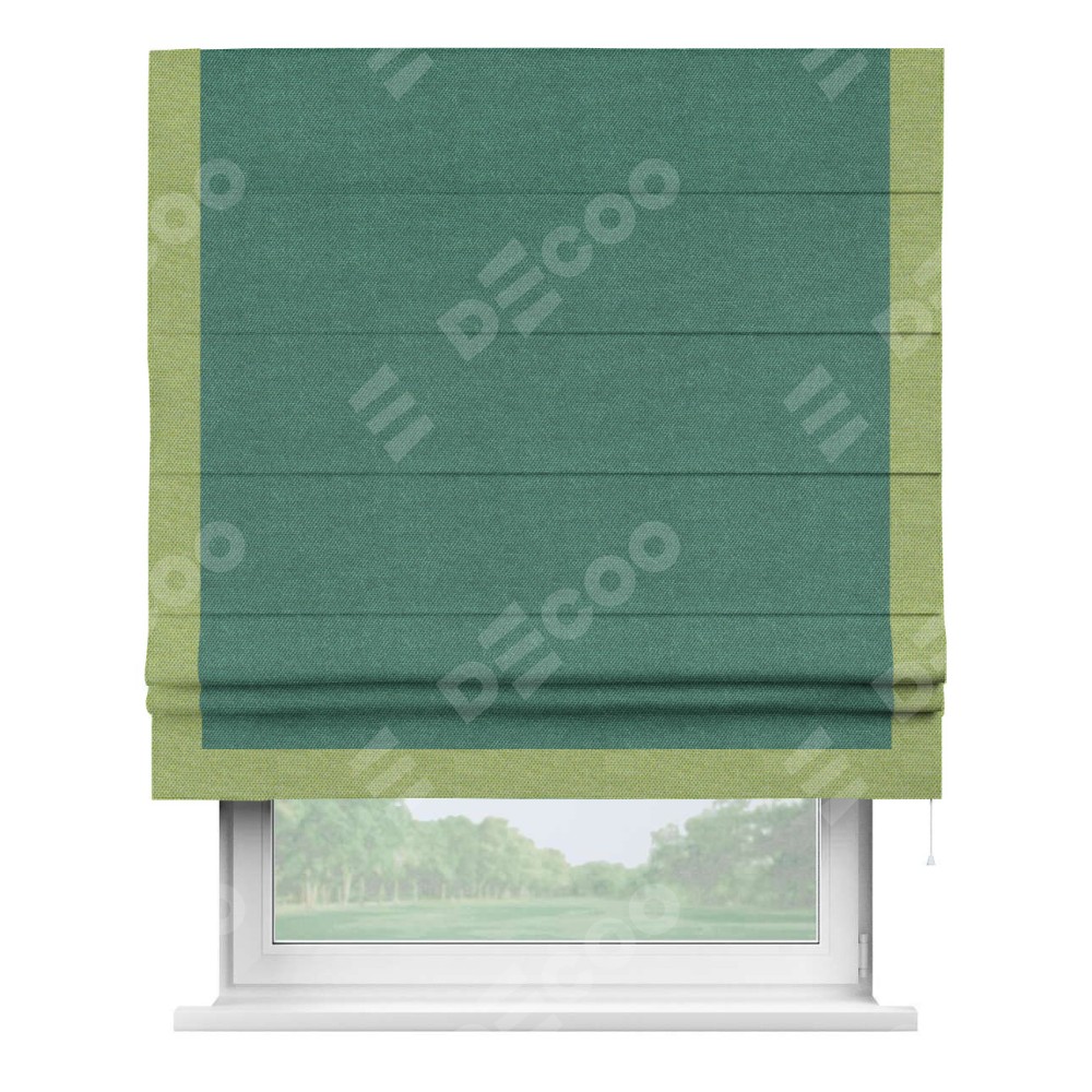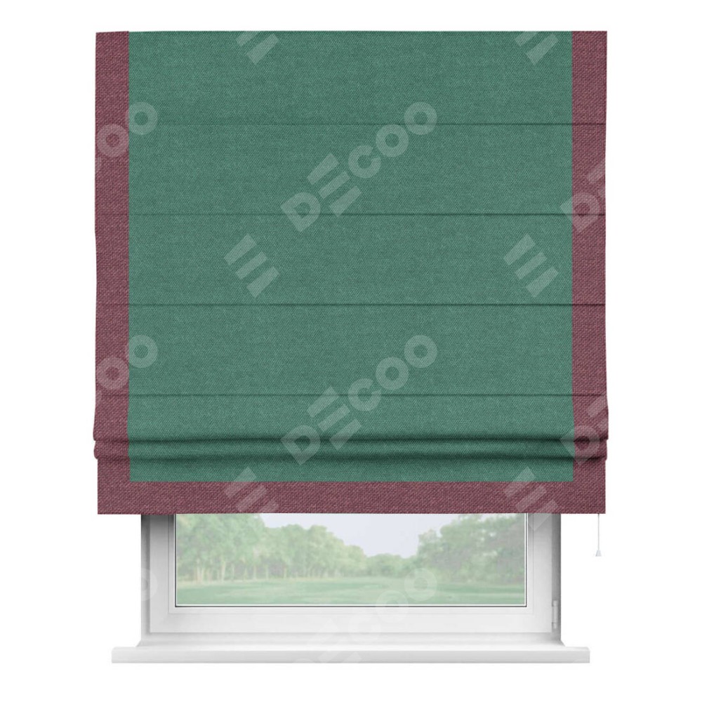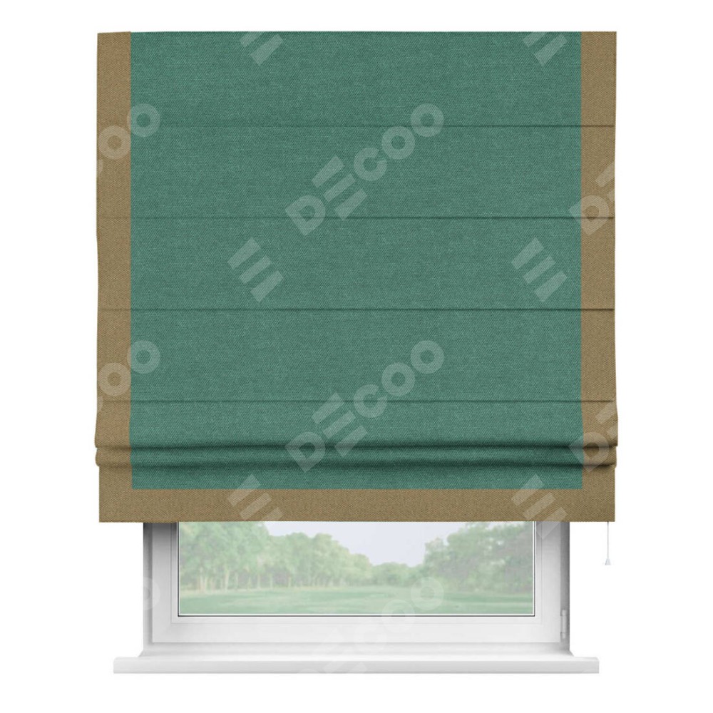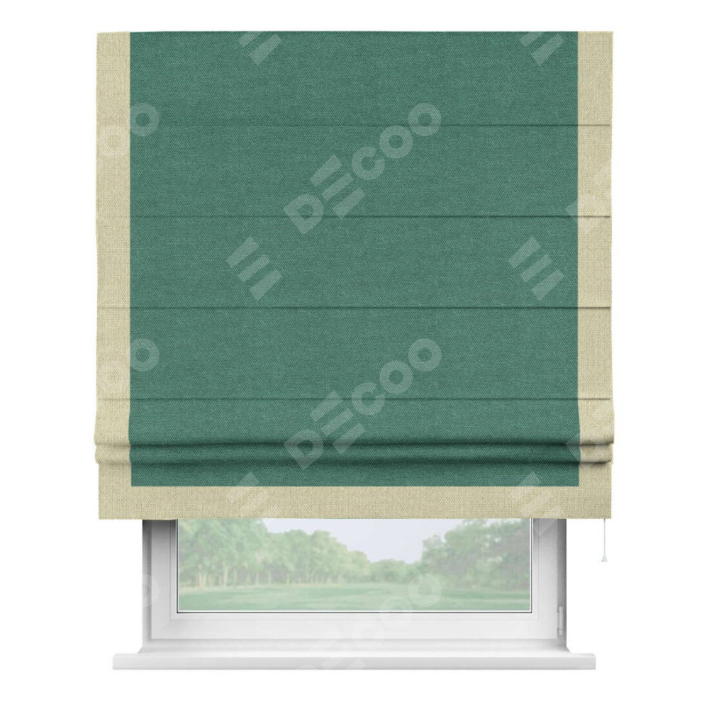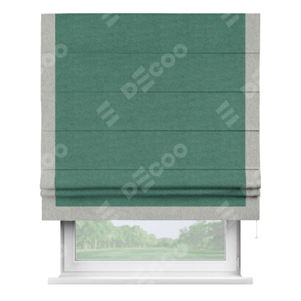 Римская штора «Кортин» для проема, лён димаут светло-бирюзовый с кантом Виктория
