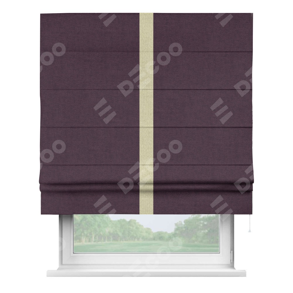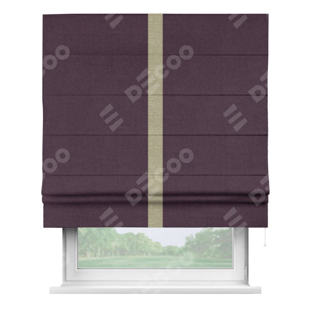 Римская штора «Кортин» для проема, лён димаут фиолетовый с кантом Хайвэй