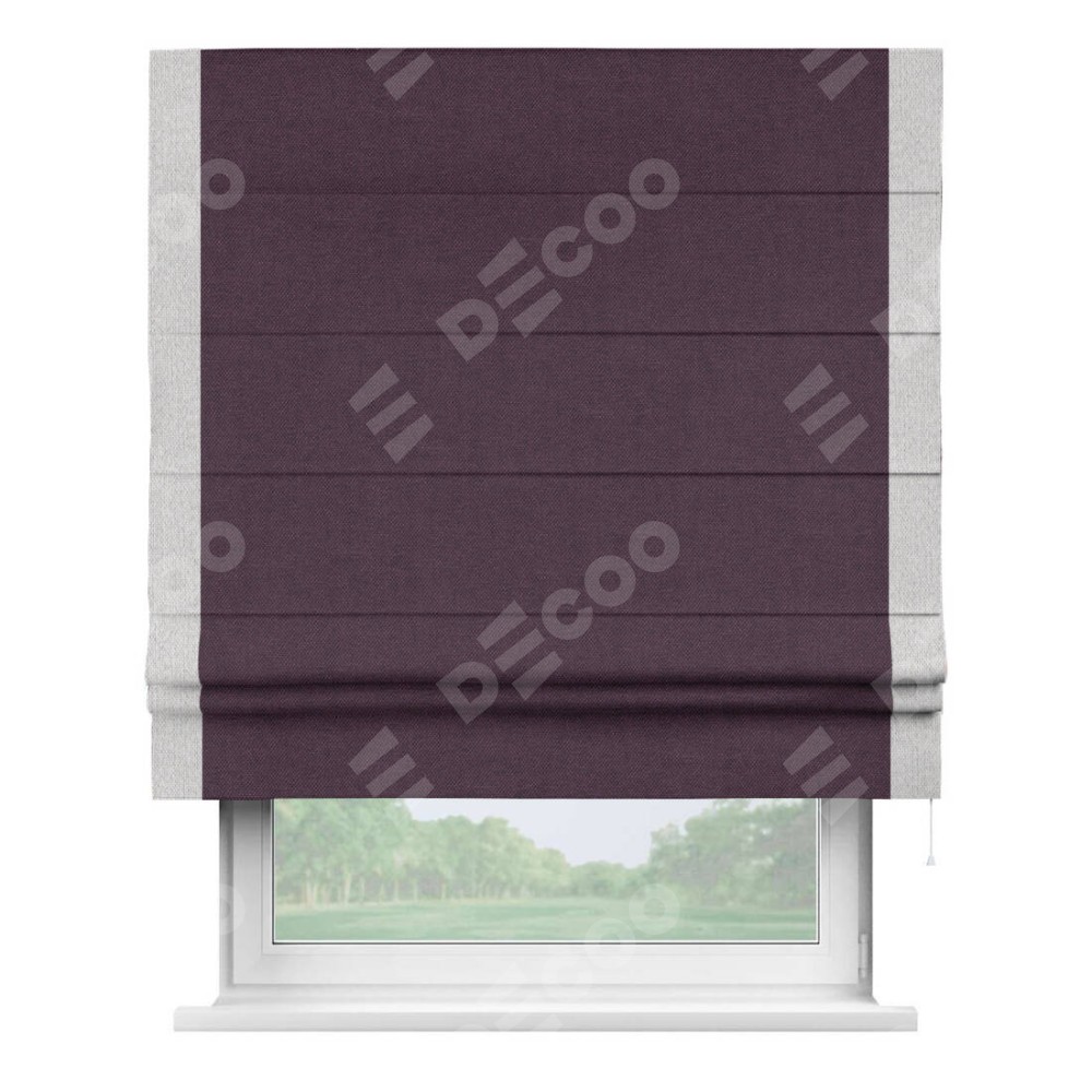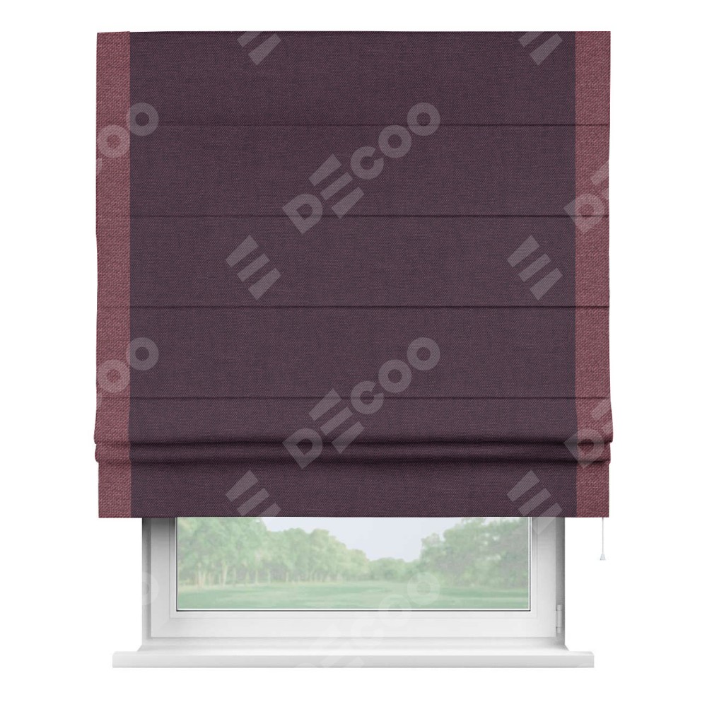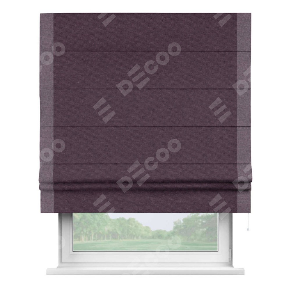 Римская штора «Кортин» для проема, лён димаут фиолетовый с кантом Стрим Дуо