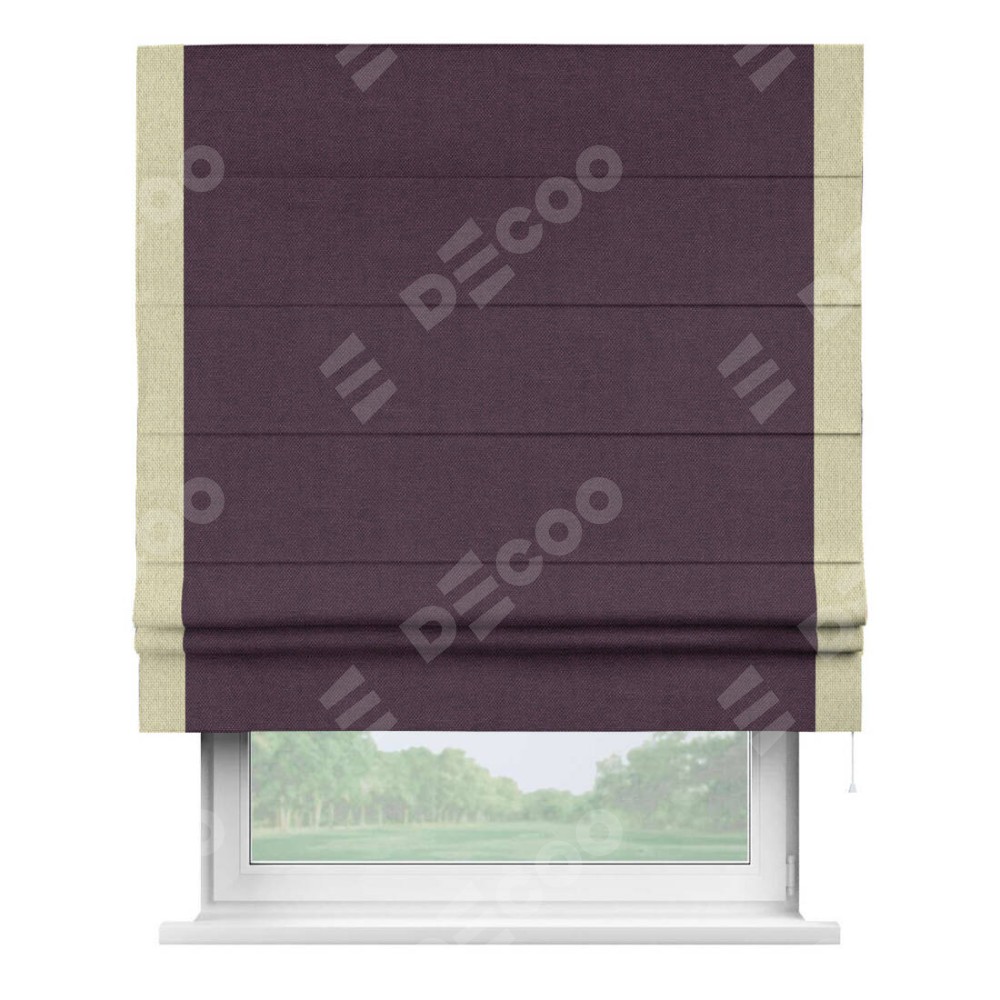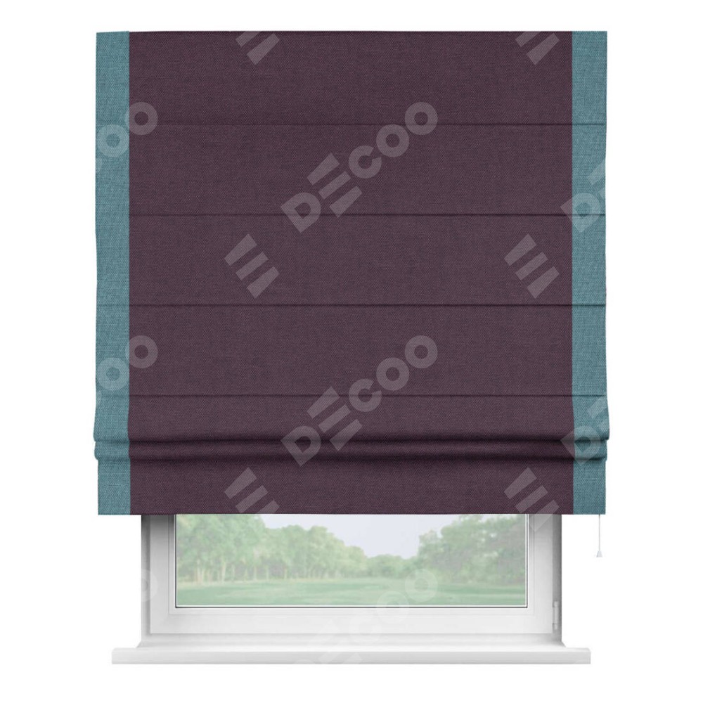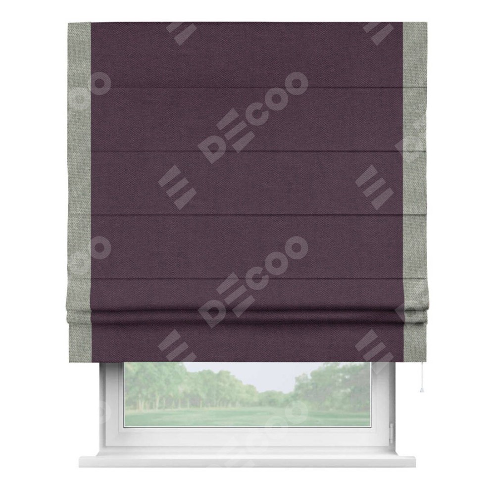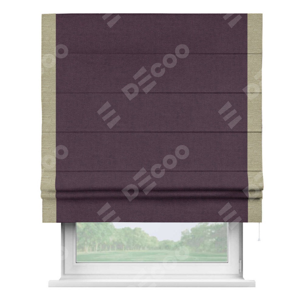 Римская штора «Кортин» для проема, лён димаут фиолетовый с кантом Стрим Дуо