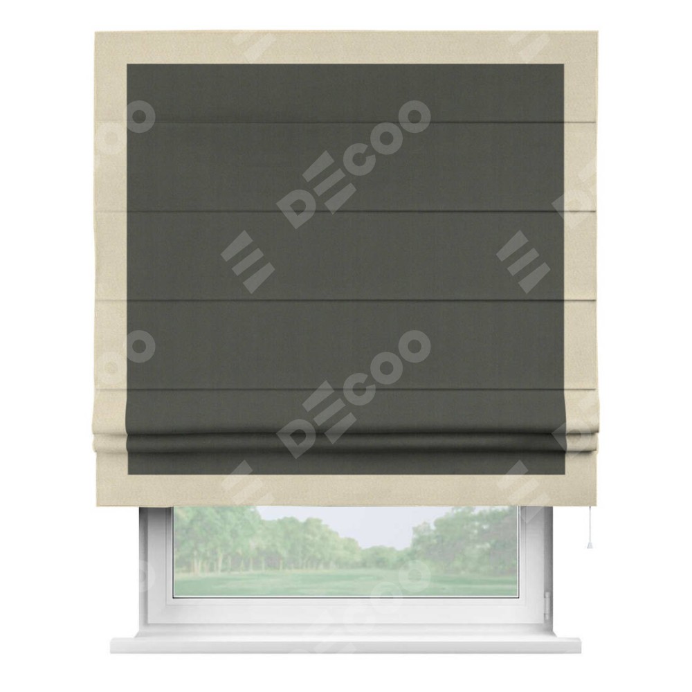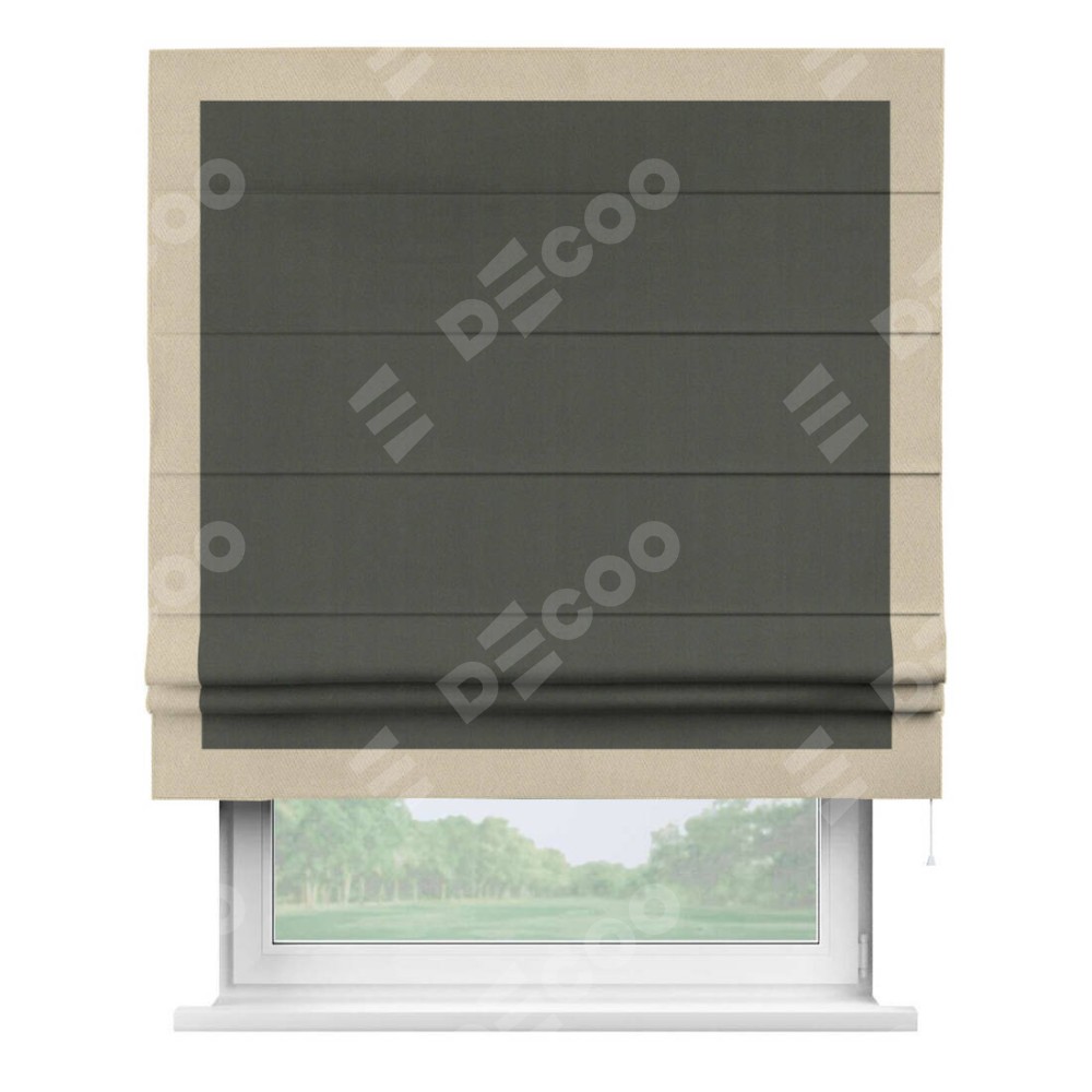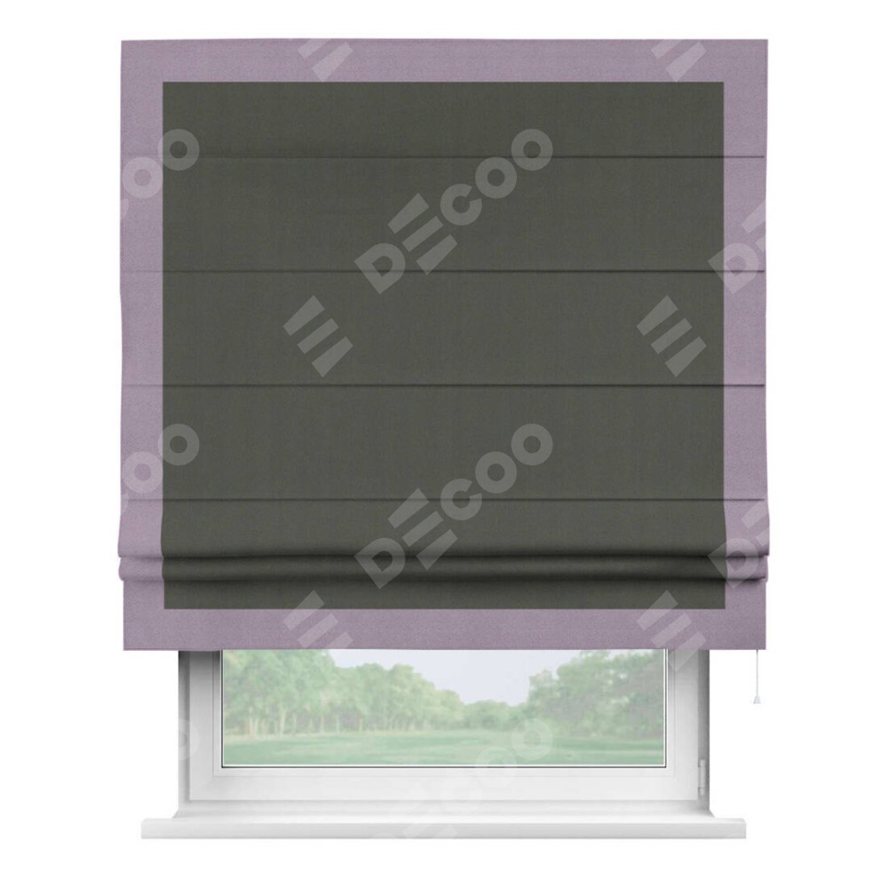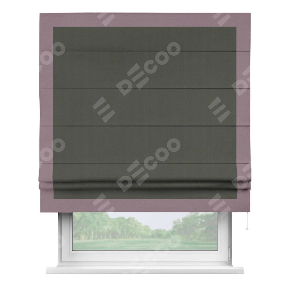 Римская штора «Кортин» для проема, блэкаут однотонный дымчато-серый с кантом Чесс