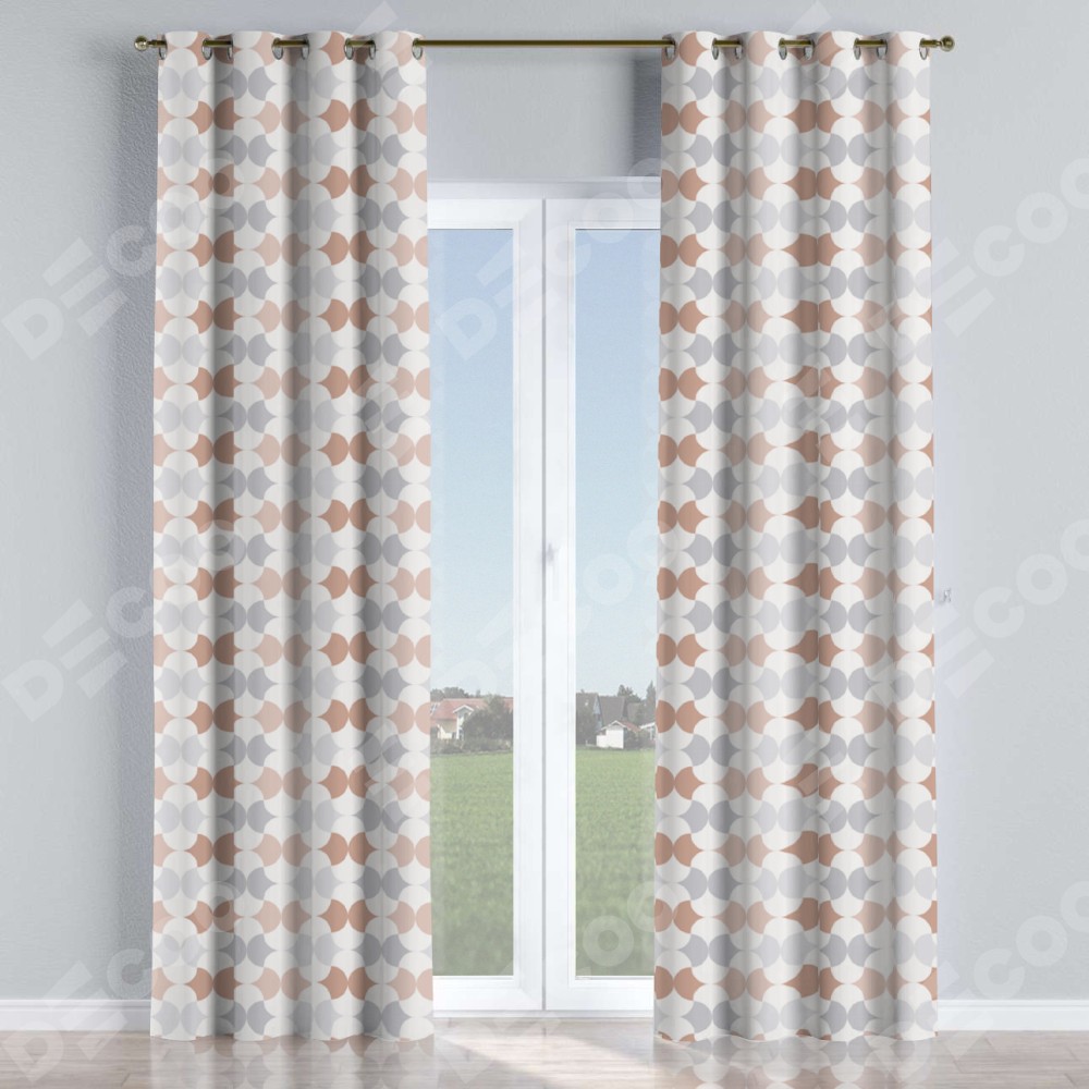 Комплект прямых штор, от производителя «Cortin», пошиты из ткани блэкаут с нанесением сублимационной печати «Модерн светлый». Данная модель пошита на люверсах, комплектуется на выбор круглым карнизом и подходит для монтажа на стену или потолок. Прямые шторы на люверсах шьются по стандарту с коэффициентом 1/2 (на 100 см. ширины проёма 200 см. ширины ткани), отличительным преимуществом данной модели является простой способ монтажа. Достаточно повесить ее на трубу и штора готова!