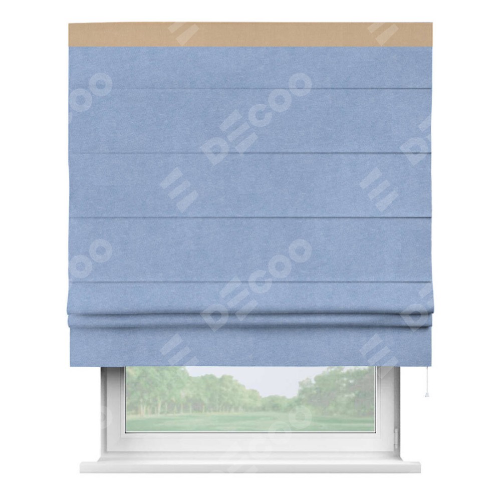 Римская штора «Кортин» для проема, вельвет васильковый с кантом Кинг