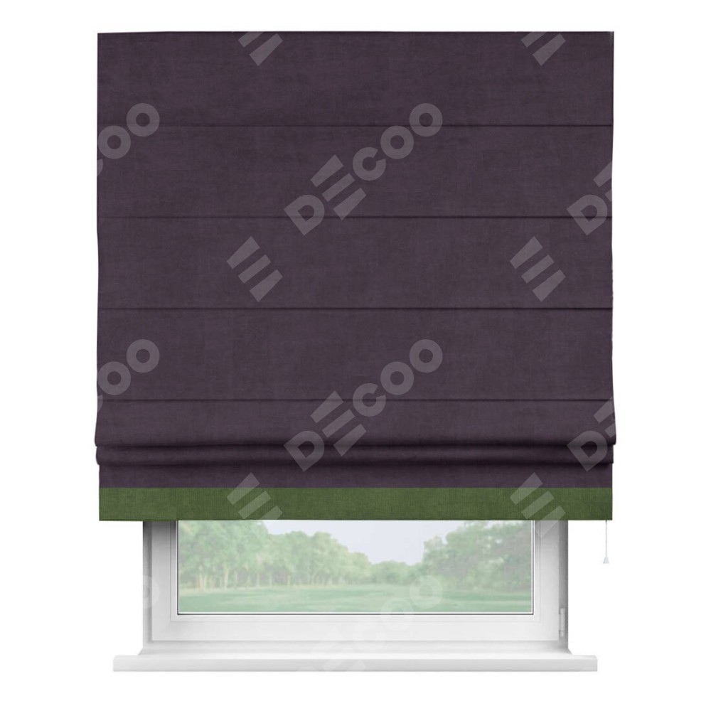 Римская штора «Кортин» для проема, вельвет тёмно-фиолетовый с кантом Джестер