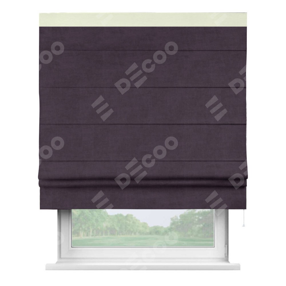 Римская штора «Кортин» для проема, вельвет тёмно-фиолетовый с кантом Кинг