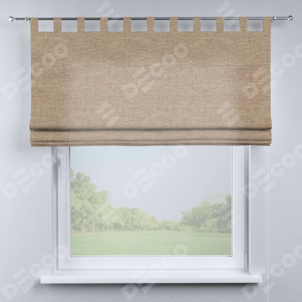 Римская штора производителя «Cortin», используется для проёма, пошита из ткани лён кашемир коричневый, артикул ткани 21614. Данная модель пошита на петлях, комплектуется на выбор круглым карнизом и подходит для монтажа на стену. Римская штора на петлях имеет простую систему регулировки высоты, отличительным преимуществом данной модели является простой способ монтажа. Достаточно повесить ее на трубу и штора готова!