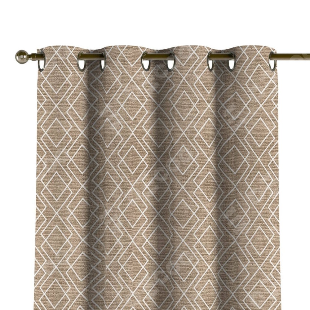 Длина карниза равна ширине окна плюс 30 — 50 см. При расчете длины штанги наконечники не учитываются. Для определения высоты штор измерьте расстояние от верхнего края карниза до пола и отнимите 1 см. Прибавьте 4 см  (гребешок над люверсом) Это габаритный размер вашего изделия.