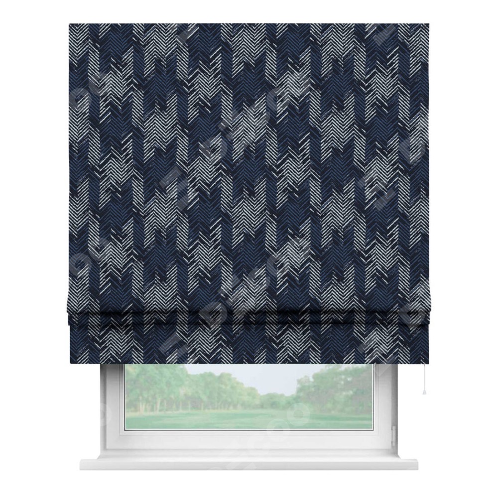 Классическая римская штора производителя «Cortin», пошита из ткани блэкаут с нанесением сублимационной печати «Пёстрый зигзаг». Имеет универсальный механизм и подходит для монтажа: на потолок, на стену и в нишу.