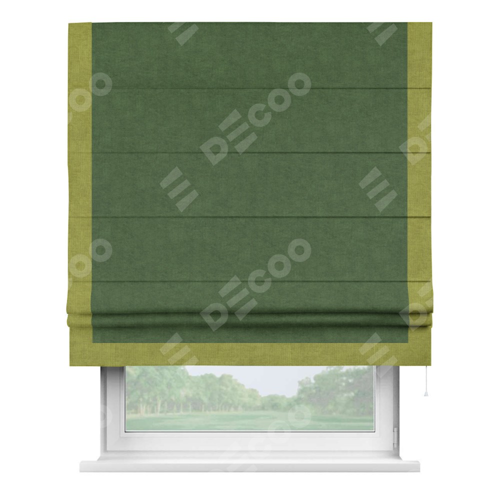 Римская штора «Кортин» для проема, канвас зелёный, с кантом Виктория