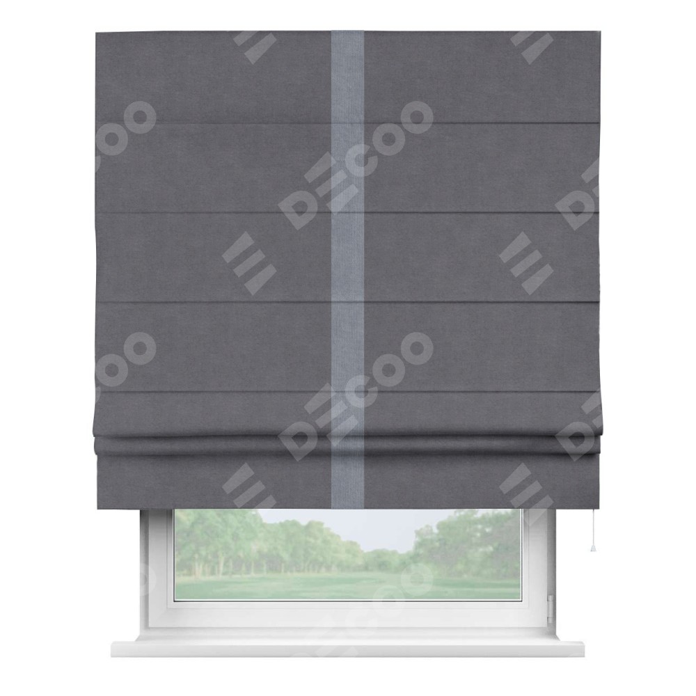 Римская штора производителя «Cortin», используется для проёма, пошита из ткани канвас лавандовый, артикул ткани v-223. Отделка шторы кантом «Хайвей» (васильковый v-203), ткань для канта используется из канваса разной расцветки на выбор. Имеет универсальный механизм и подходит для монтажа: на потолок, на стену и в нишу.