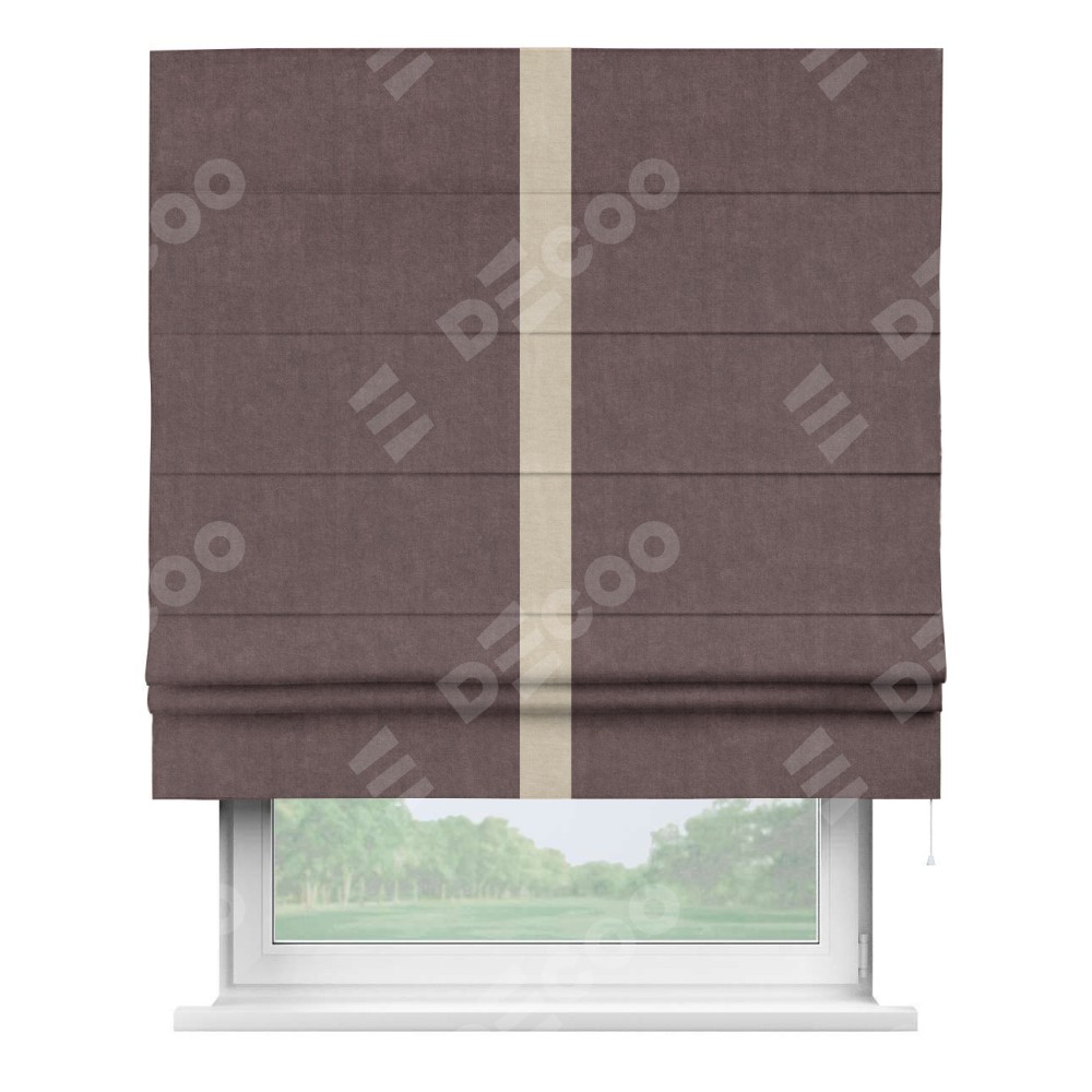 Римская штора «Кортин» для проема, канвас махагон, с кантом Хайвэй