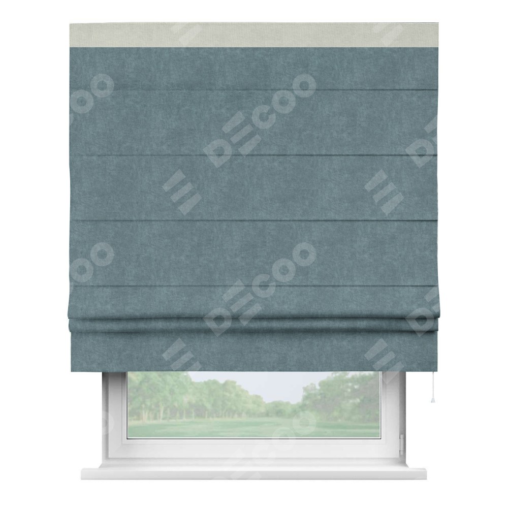 Римская штора «Кортин» для проема, канвас серо-голубой, с кантом Кинг