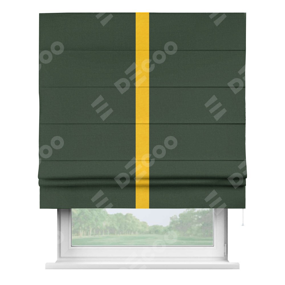 Римская штора «Кортин» для проема, канвас глубокий зелёный, с кантом Хайвэй