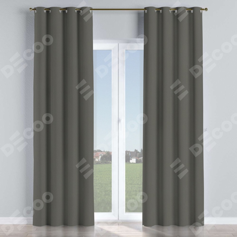 Комплект прямых штор, от производителя «Cortin», пошиты из ткани блэкаут однотонный тёмно-серый, артикул ткани 91570. Данная модель пошита на люверсах, комплектуется на выбор круглым карнизом и подходит для монтажа на стену или потолок. Прямые шторы на люверсах шьются по стандарту с коэффициентом 1/2 (на 100 см. ширины проёма 200 см. ширины ткани), отличительным преимуществом данной модели является простой способ монтажа. Достаточно повесить ее на трубу и штора готова!