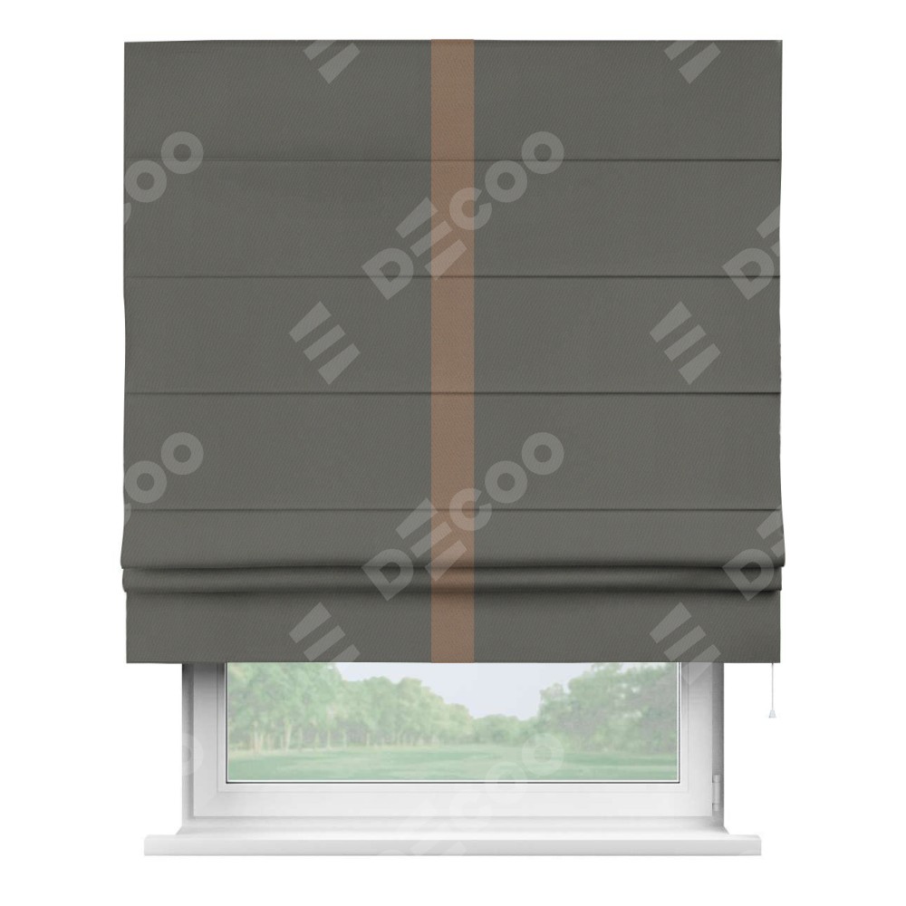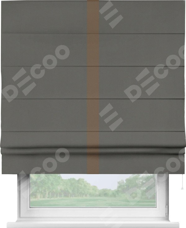 Римская штора «Кортин» для проема, блэкаут однотонный тёмно-серый с кантом Хайвэй
