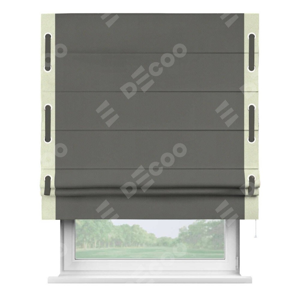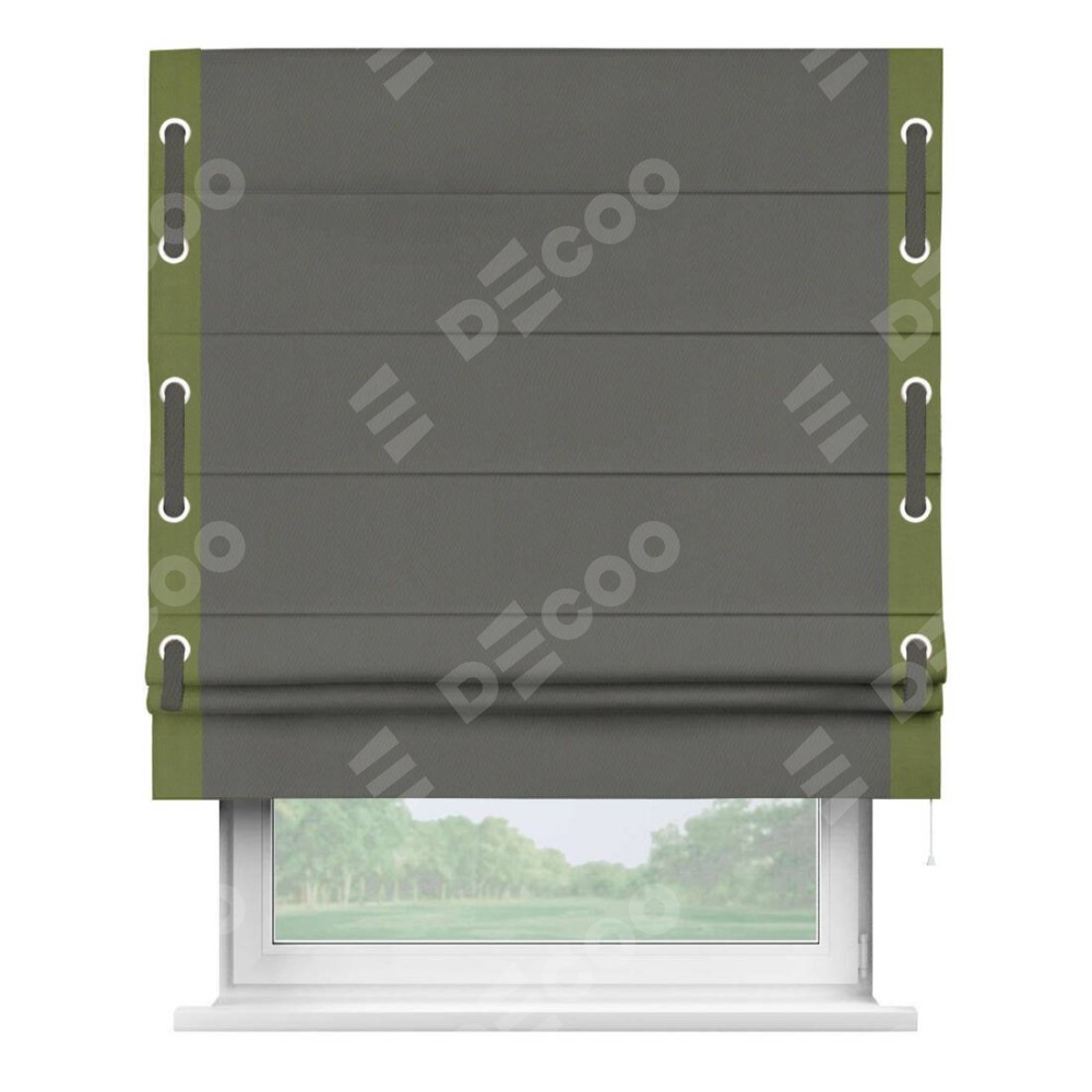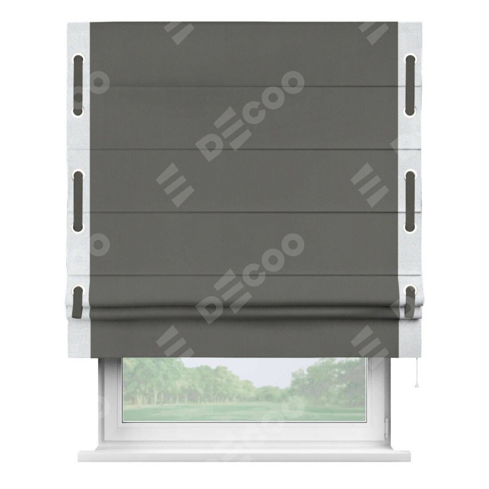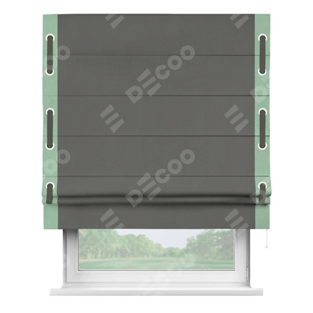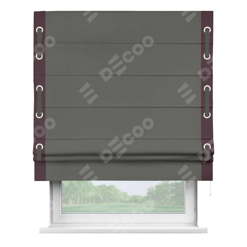 Римская штора «Кортин» для проема, блэкаут однотонный тёмно-серый с кантом Стрим Дуо (люверсы с пояском)