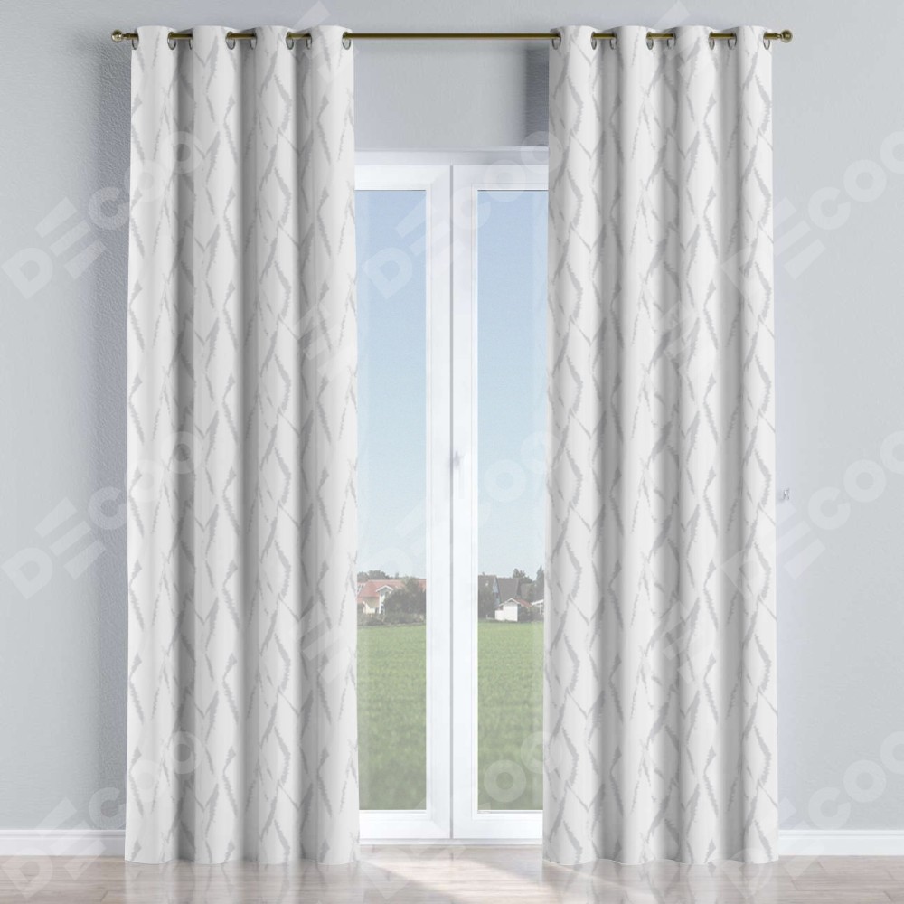Длина карниза равна ширине окна плюс 30 — 50 см. При расчете длины штанги наконечники не учитываются. Для определения высоты штор измерьте расстояние от верхнего края карниза до пола и отнимите 1 см. Прибавьте 4 см  (гребешок над люверсом) Это габаритный размер вашего изделия.