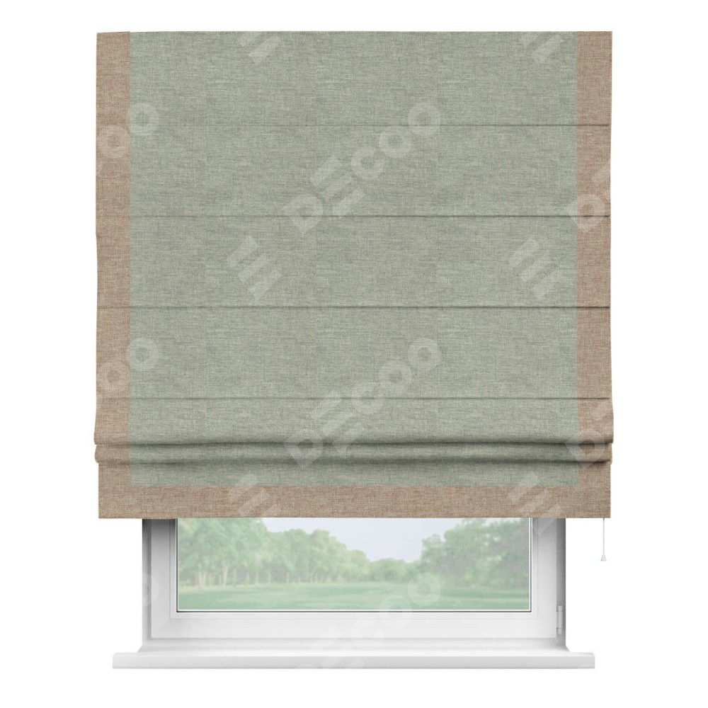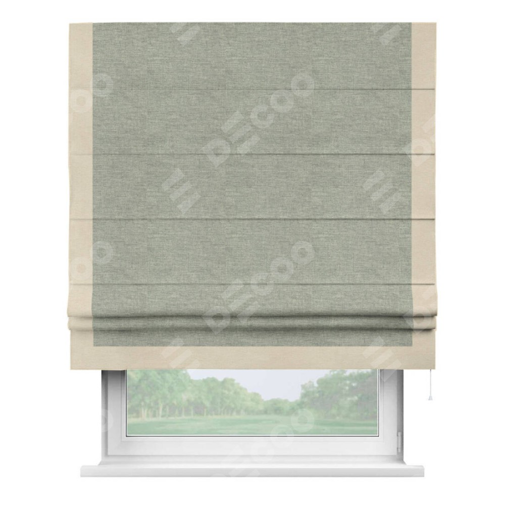 Римская штора производителя «Cortin», используется для проёма, пошита из ткани лён кашемир серый new, артикул 21618. Отделка шторы кантом «Виктория», ткань для канта используется из льна разной расцветки на выбор. Имеет универсальный механизм и подходит для монтажа: на потолок, на стену и в нишу.