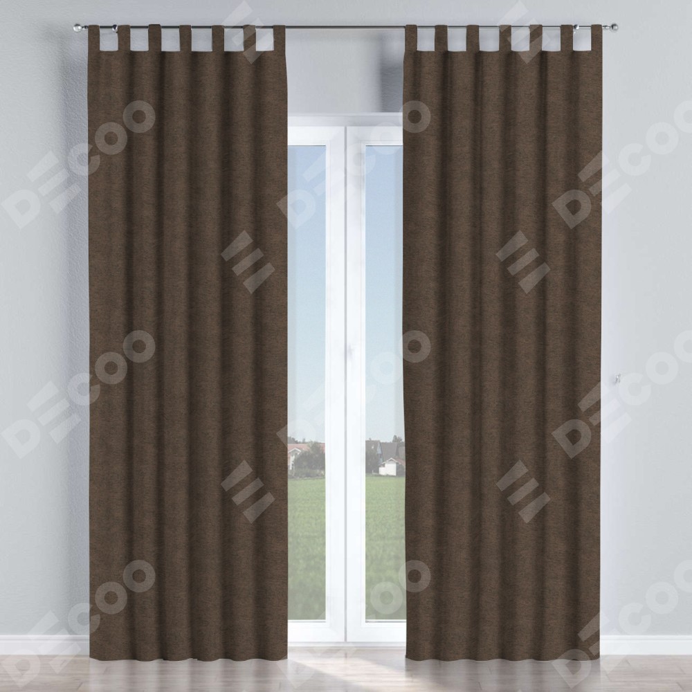Комплект прямых штор, от производителя «Cortin», пошиты из ткани твид блэкаут тёмно-коричневый, артикул ткани 90933. Данная модель пошита на петлях, комплектуется на выбор круглым карнизом и подходит для монтажа на стену или потолок. Прямые шторы на петлях шьются по стандарту с коэффициентом 1/2 (на 100 см. ширины проёма 200 см. ширины ткани), отличительным преимуществом данной модели является простой способ монтажа. Достаточно повесить ее на трубу и штора готова!