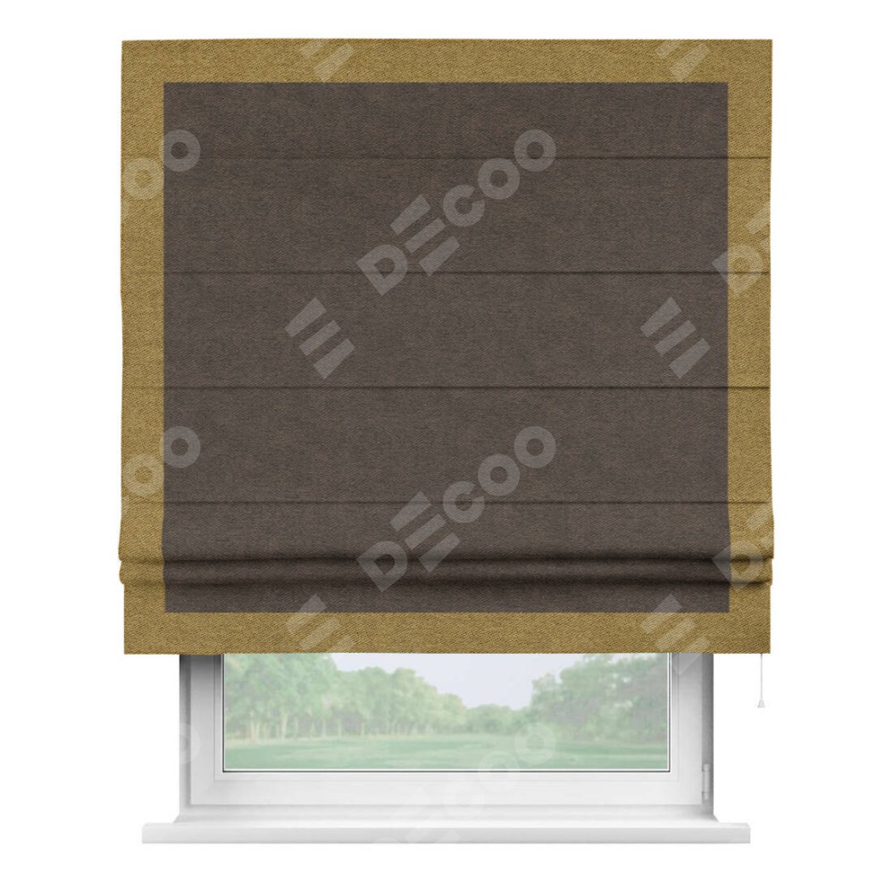 Римская штора «Кортин» для проема, твид блэкаут тёмно-коричневый, с кантом Чесс