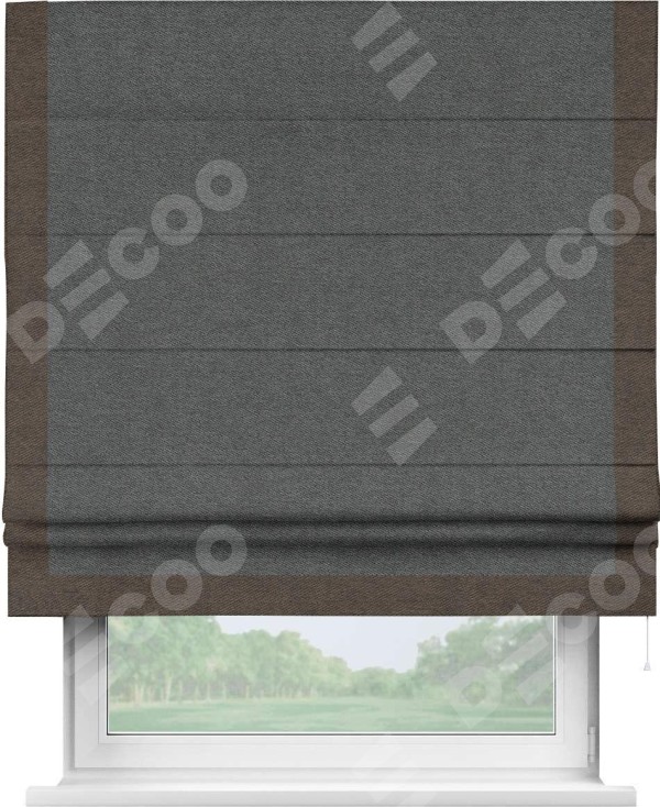 Римская штора «Кортин» для проема, твид блэкаут тёмно-серый, с кантом Виктория