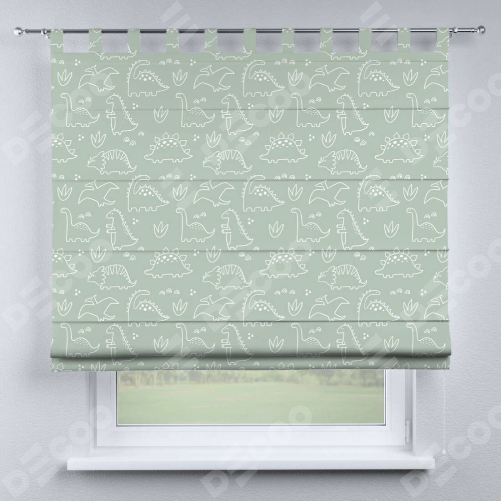 Римская штора производителя «Cortin», используется для проёма, пошита из ткани блэкаут с нанесением сублимационной печати «Динопарк». Данная модель пошита на петлях, комплектуется на выбор круглым карнизом и подходит для монтажа на стену. Римская штора на петлях имеет простую систему регулировки высоты, отличительным преимуществом данной модели является простой способ монтажа. Достаточно повесить ее на трубу и штора готова!