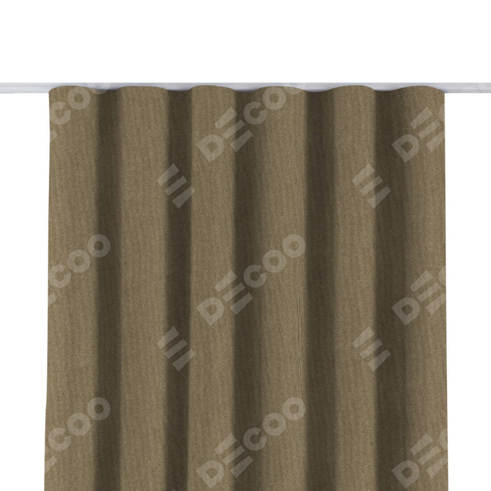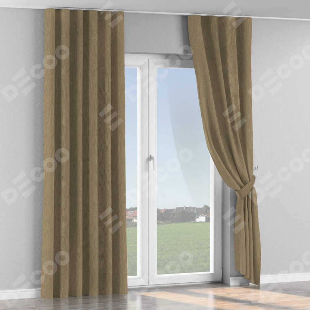 Комплект прямых штор, от производителя «Cortin», пошиты из ткани лён димаут тёмно-бежевый, артикул ткани 16261. С изнаночной стороны в верхней части штор пристрачивается шторная лента с декоративными складками «Волна». Для создания элегантных складок прямые шторы шьются по стандарту с коэффициентом 1:2 (на 100 см. ширины проёма 200 см. ширины ткани).