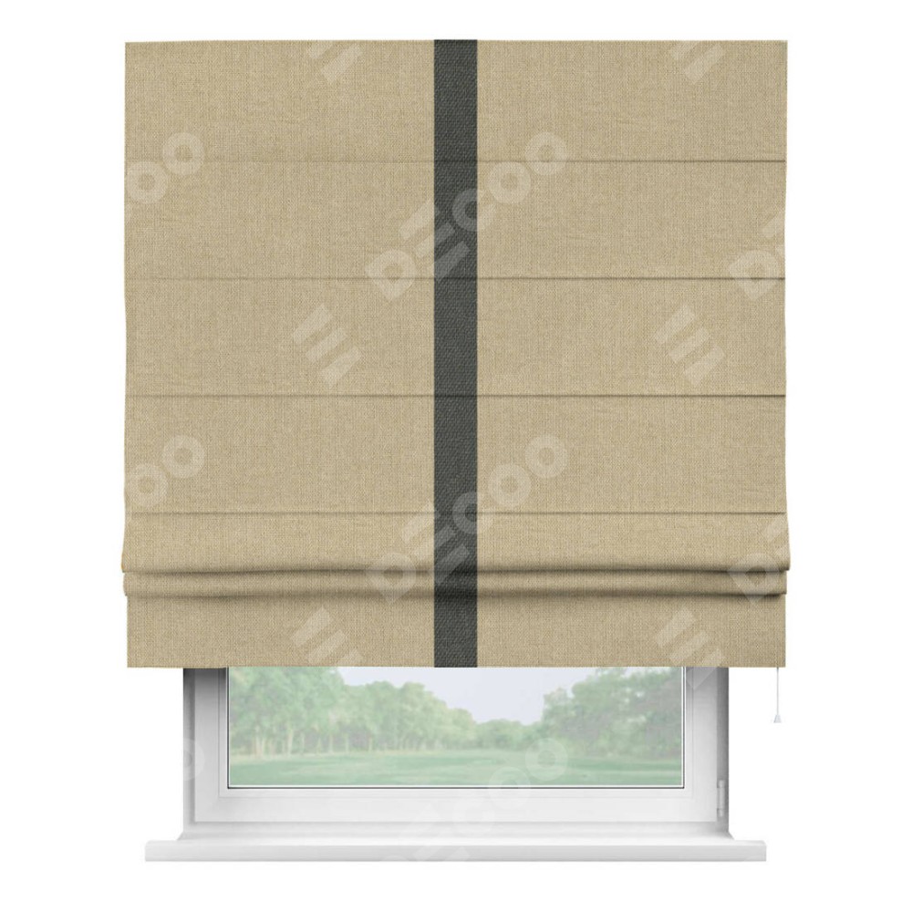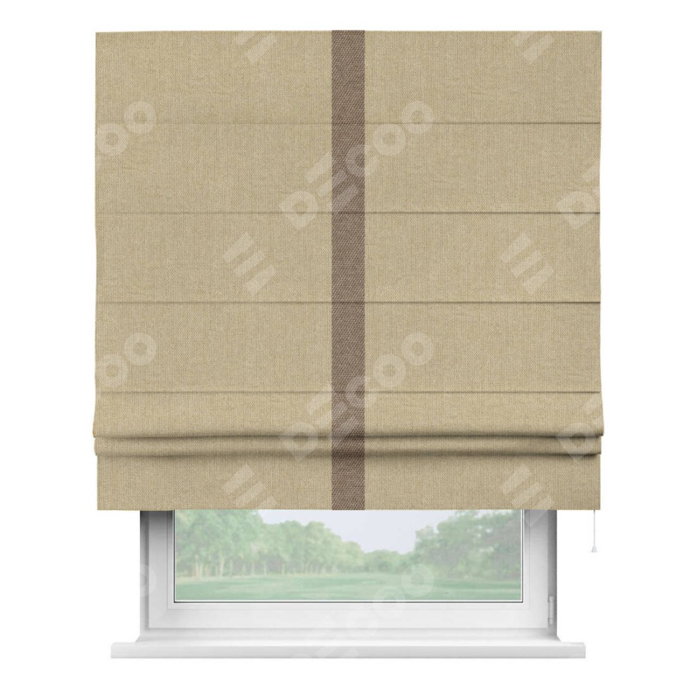 Римская штора «Кортин» для проема, лён димаут песочный с кантом Хайвэй