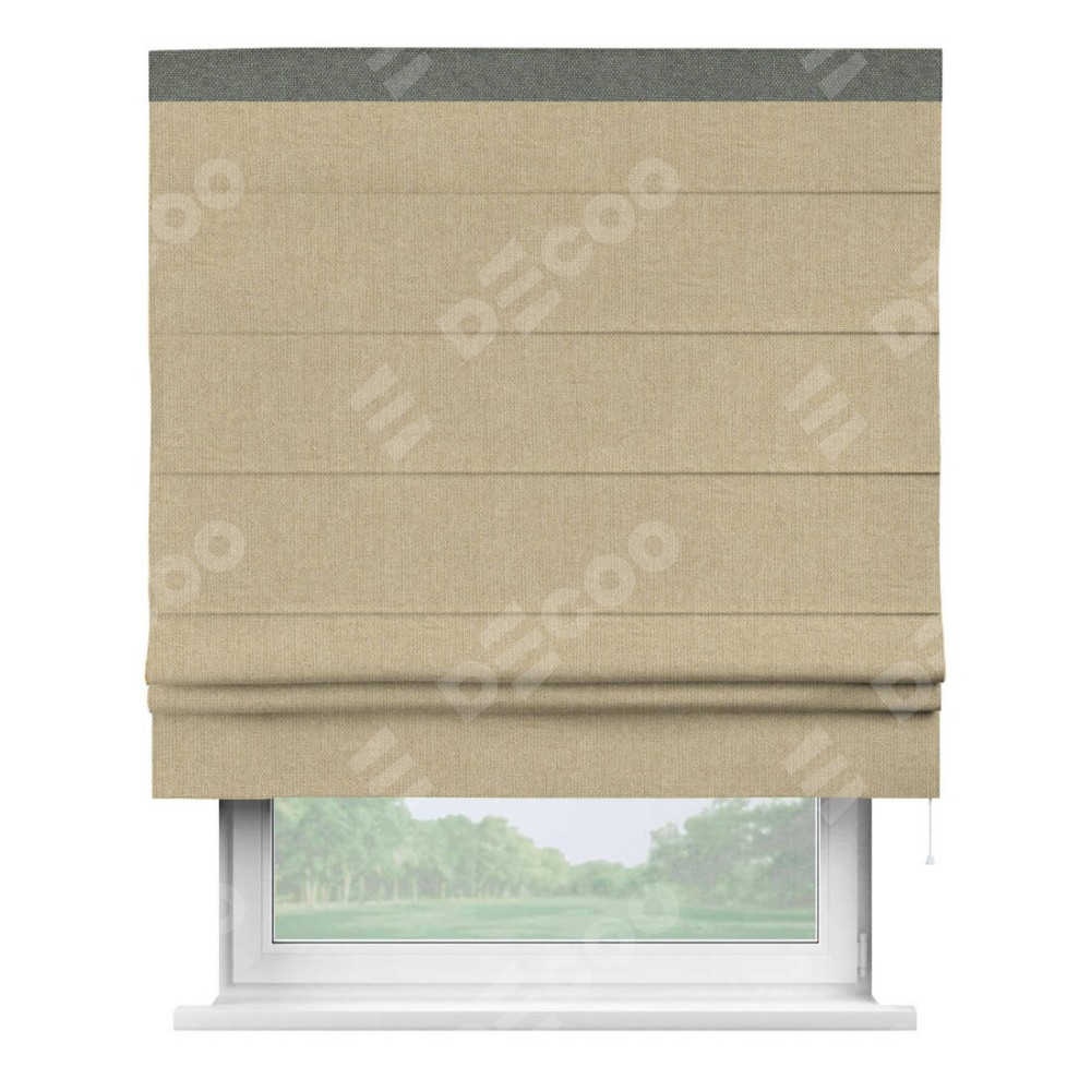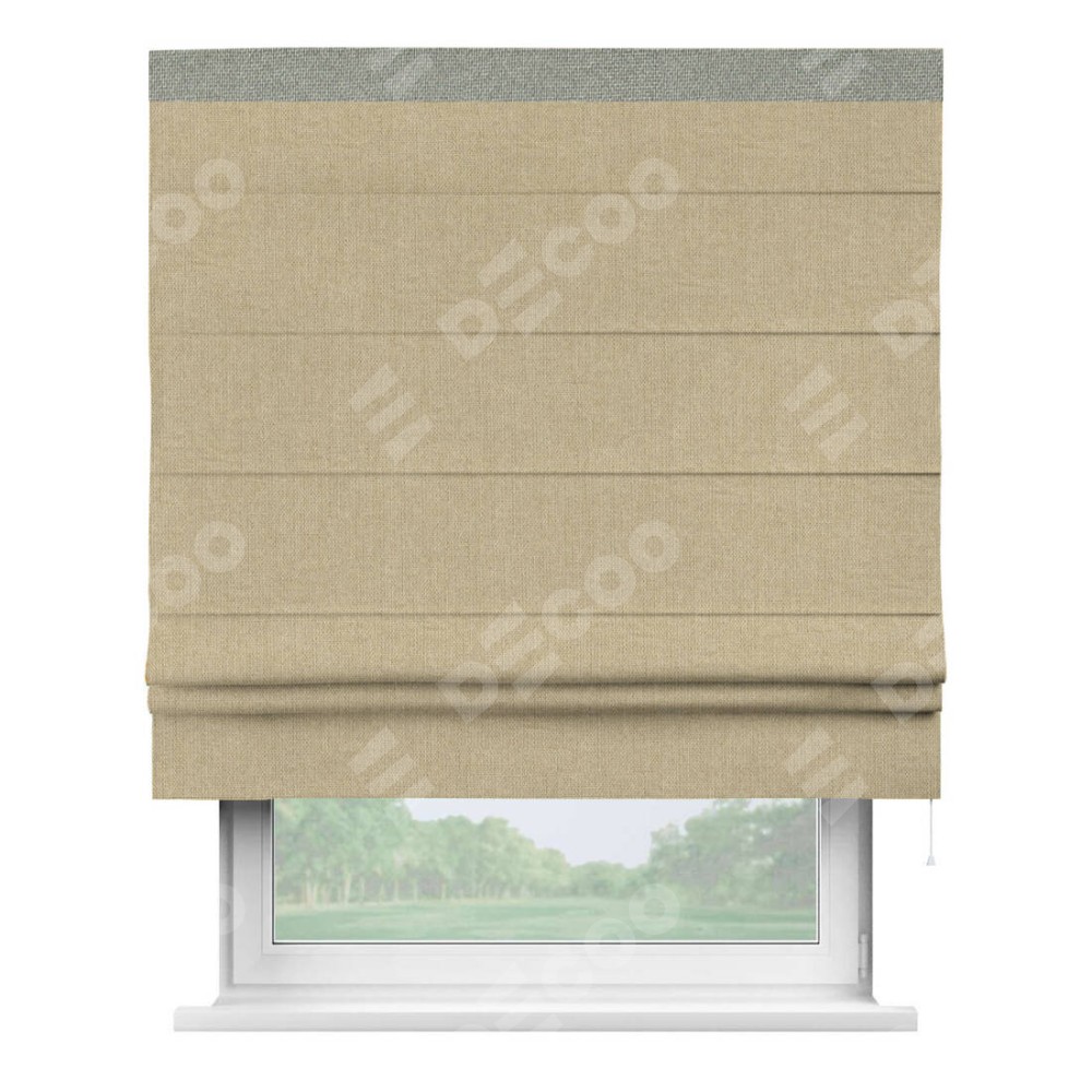 Римская штора «Кортин» для проема, лён димаут песочный с кантом Кинг