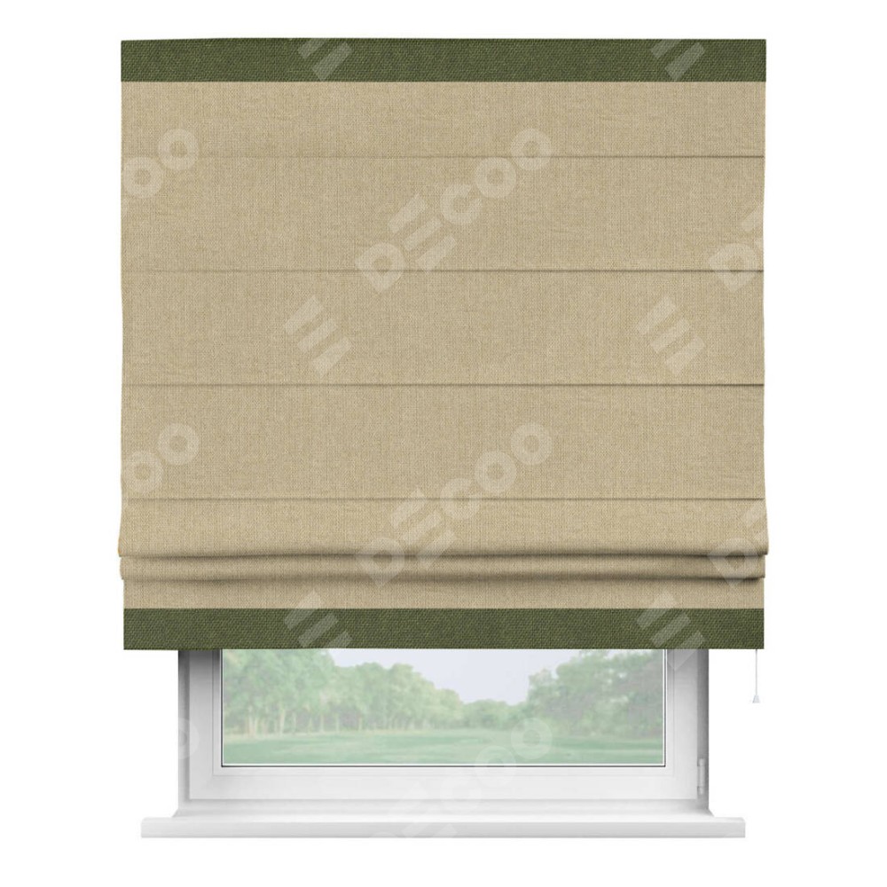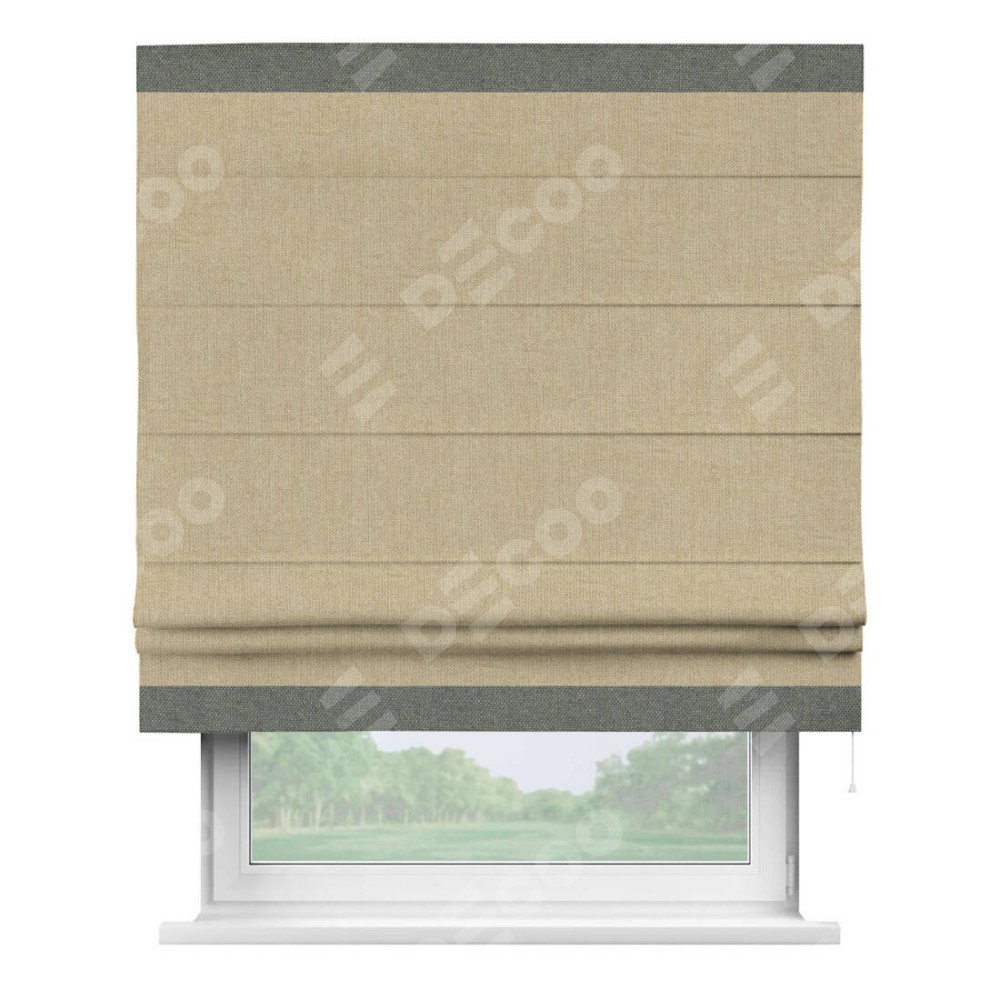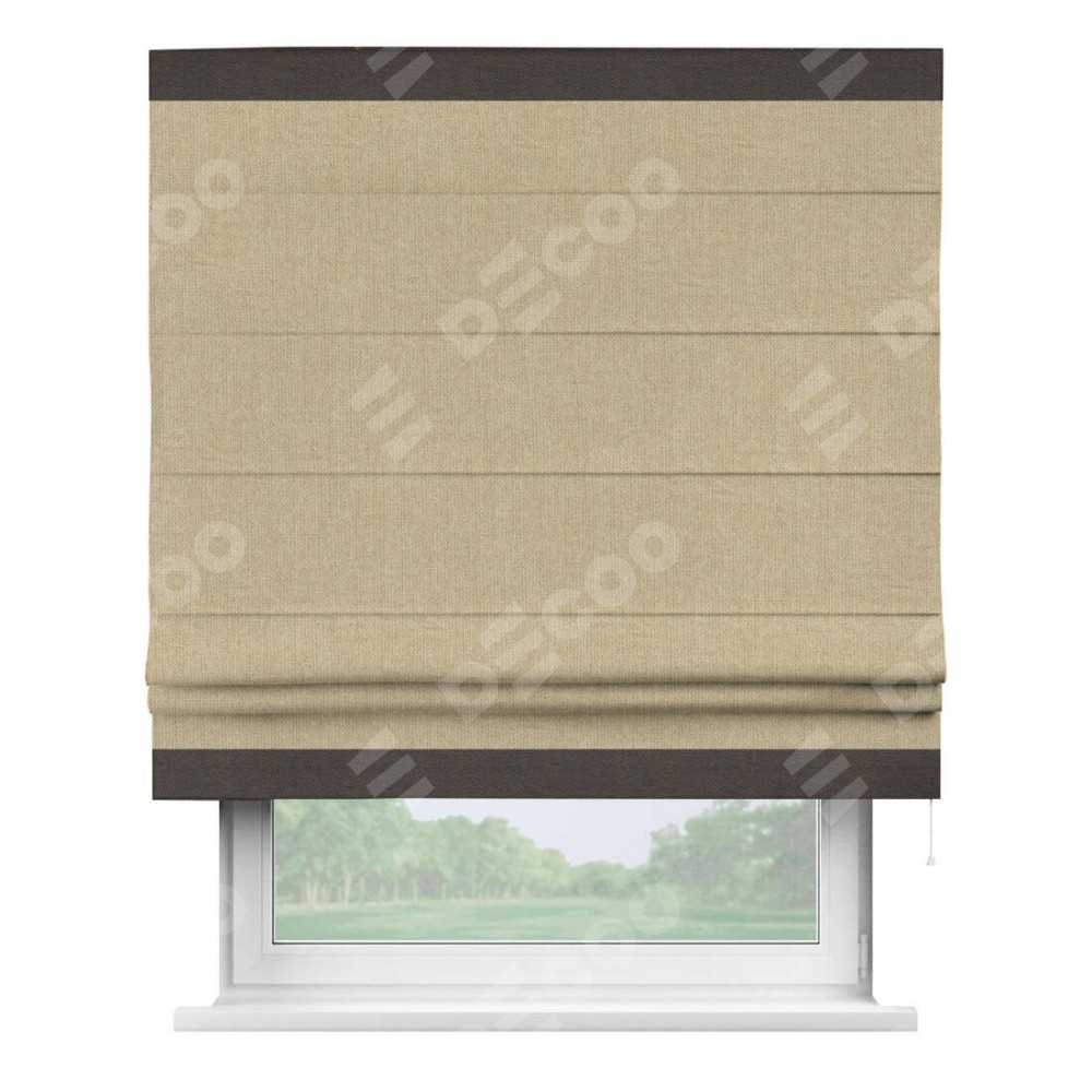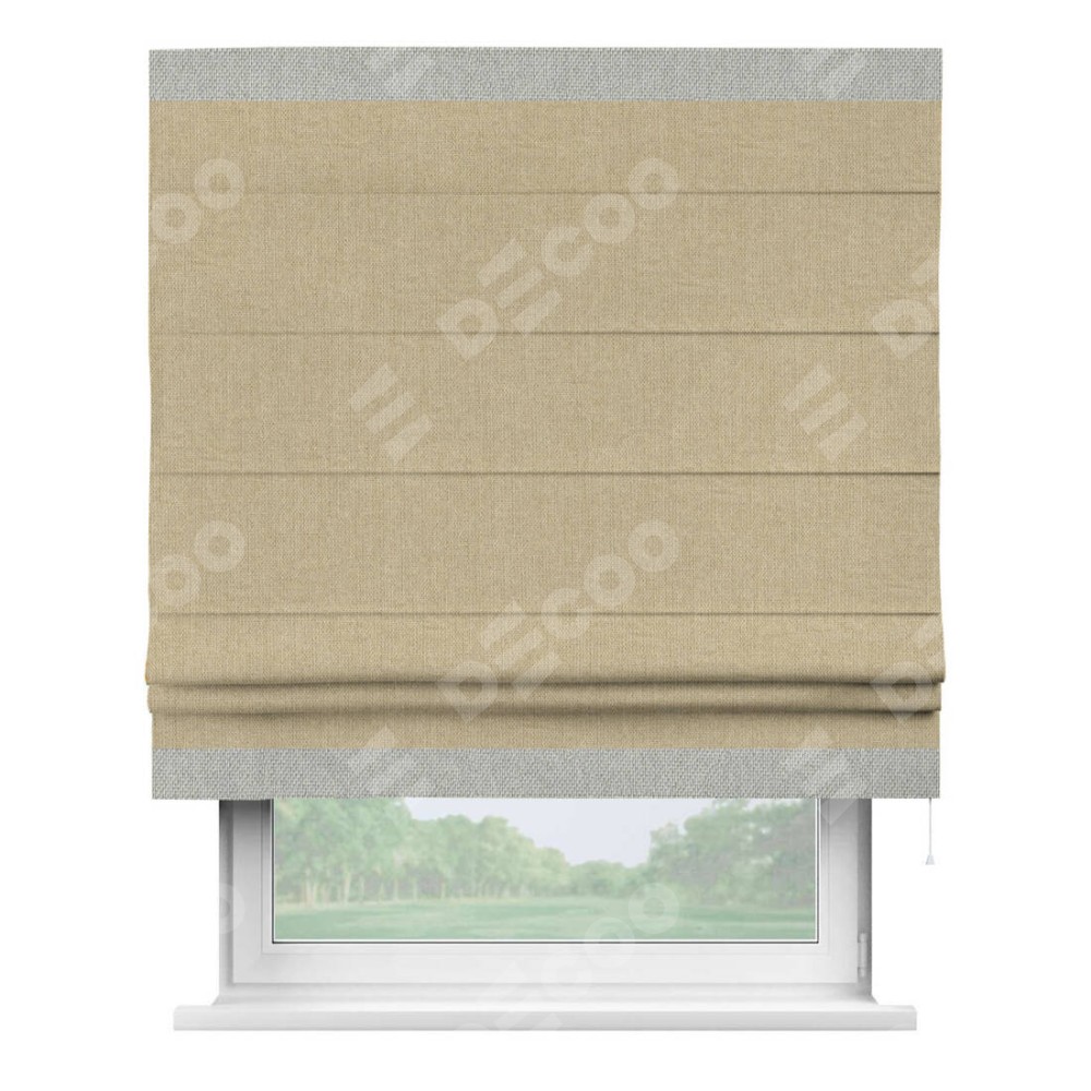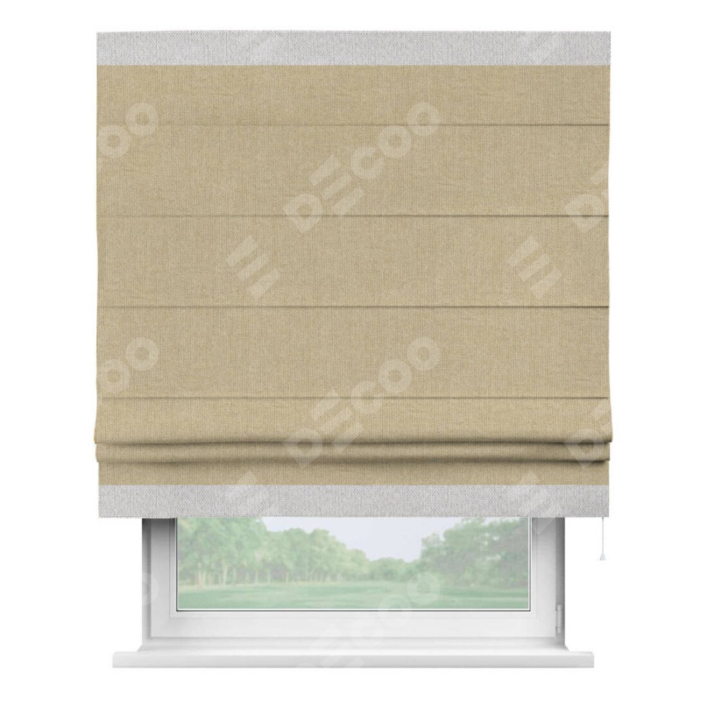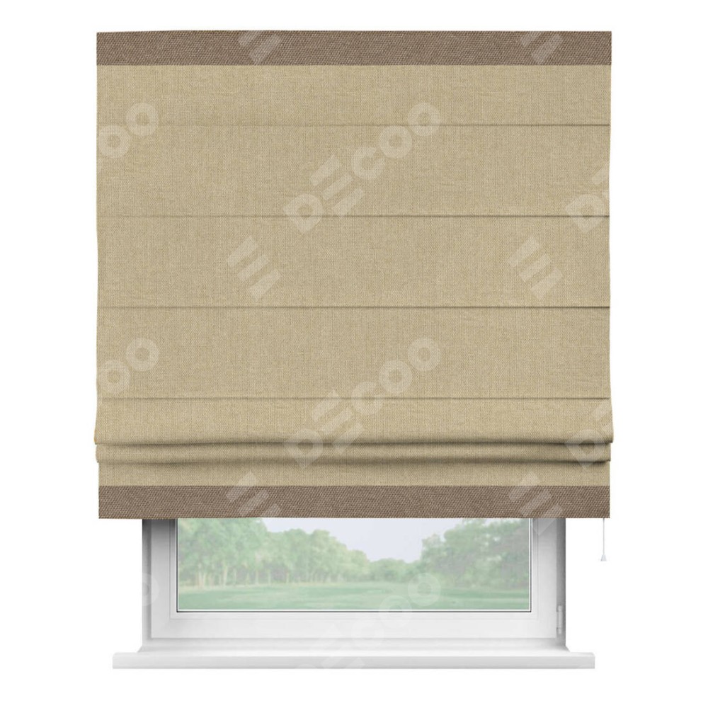 Римская штора «Кортин» для проема, лён димаут песочный с кантом Горизонт